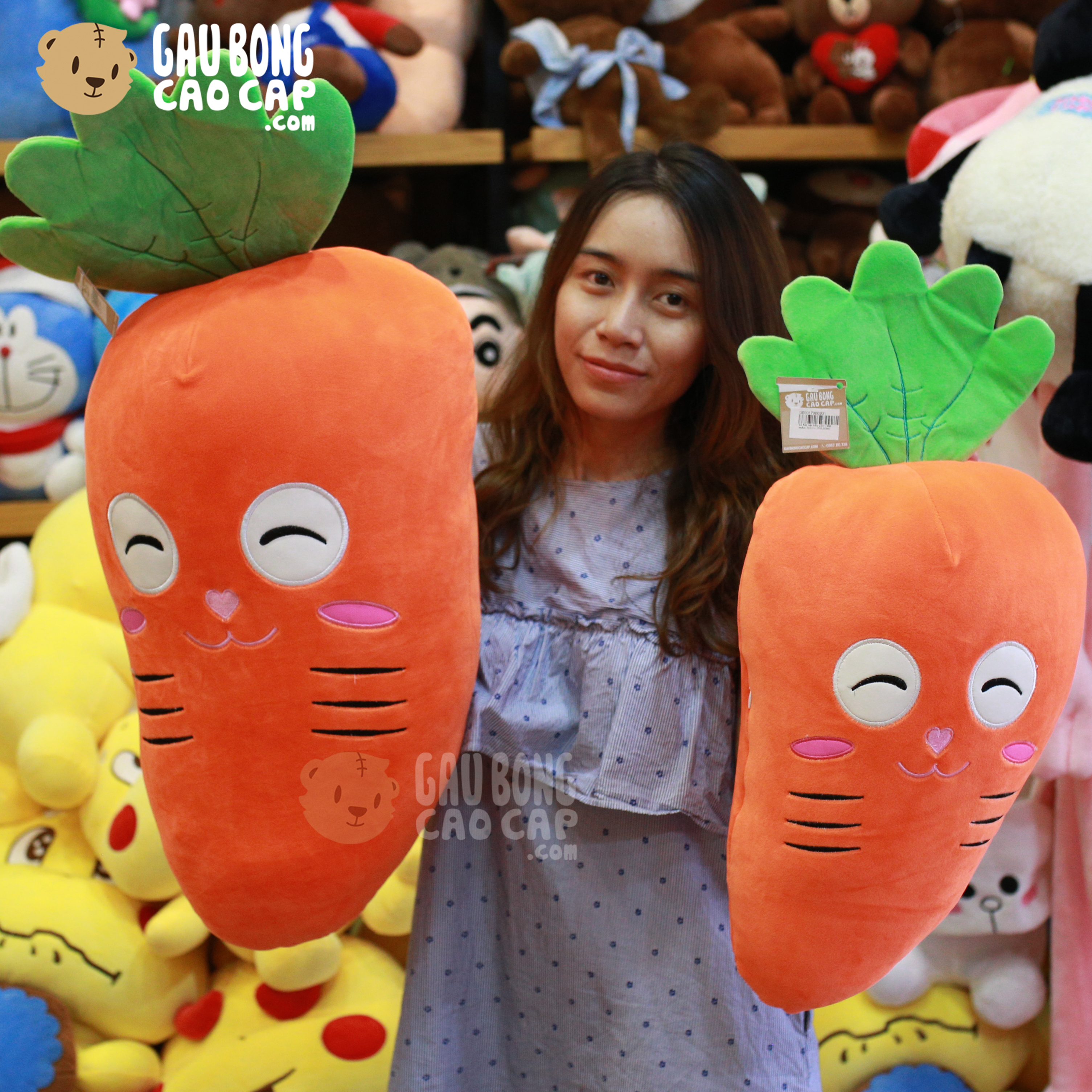 Cà Rốt bông mặt biểu cảm được thiết kế với 2 kích thước Gấu Bông lớn nhỏ khác nhau: 60cm, 80cm