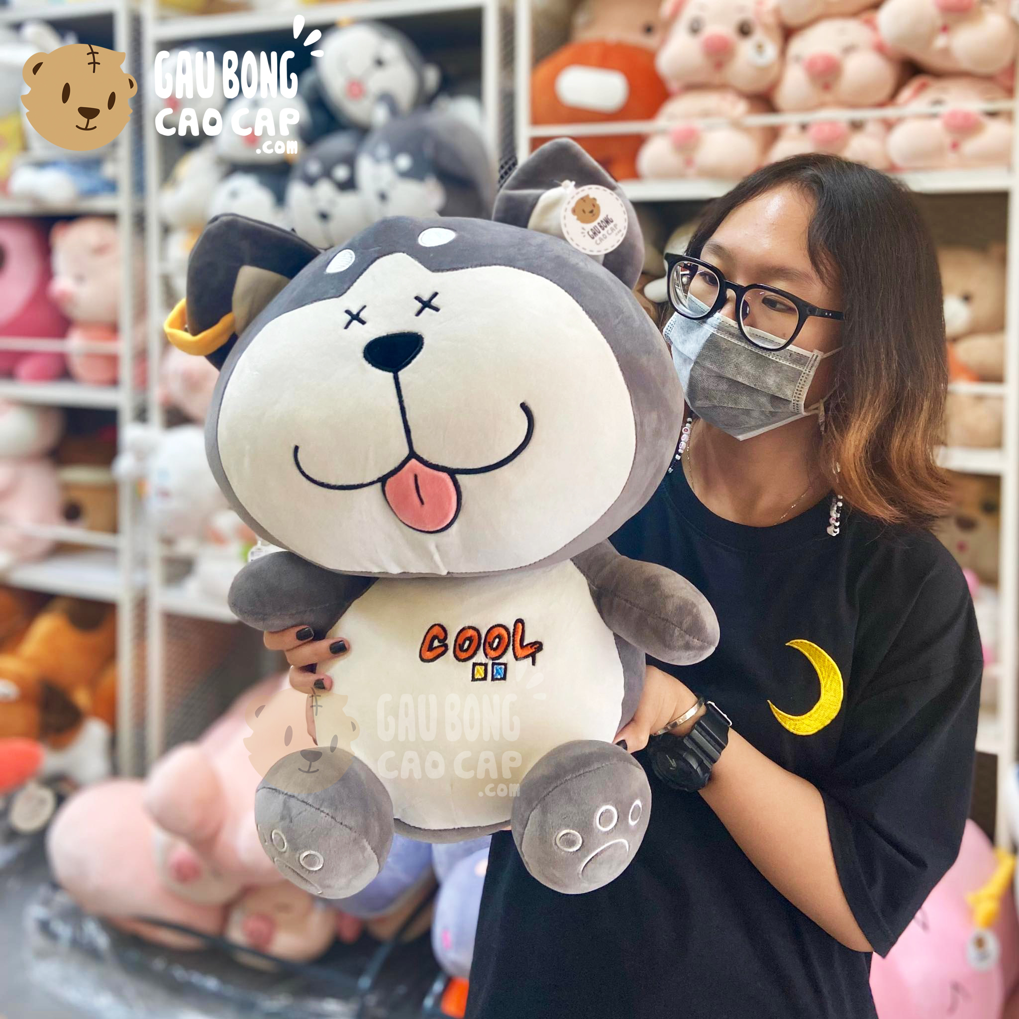 Chó Bông Husky Cool ngồi lè lưỡi cười đang nằm trong danh sách những sản phẩm Gấu Bông Chó Bông BÁN CHẠY và đang được các bạn trẻ YÊU THÍCH NHẤT.