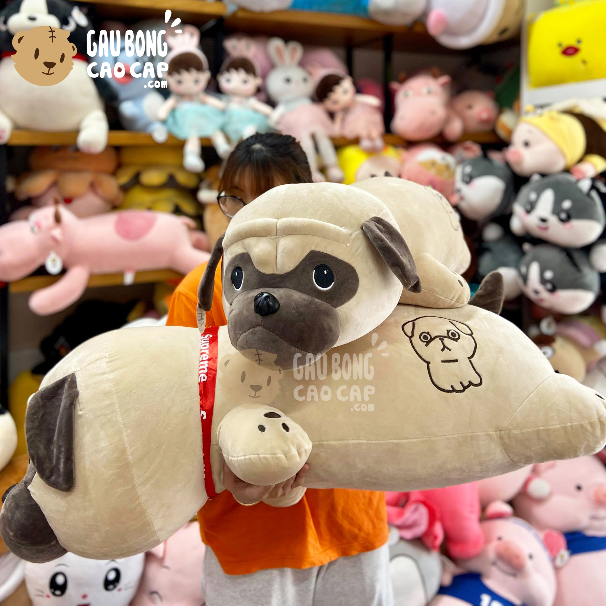 Chó bông mặt xệ nằm lông mịn mông thêu hình Chó được thiết kế với 3 kích thước Gấu Bông lớn nhỏ khác nhau: 60cm, 80cm, 1m