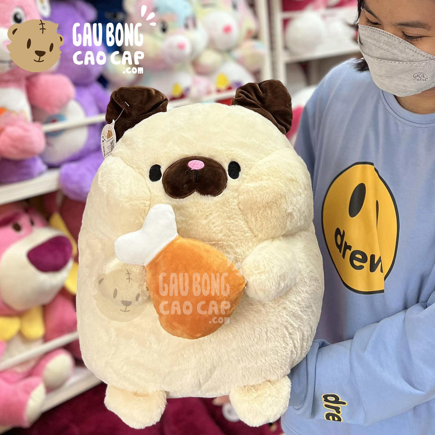 Chó Bông Mặt Xệ ôm Đùi Gà đang nằm trong danh sách những sản phẩm Gấu Bông Thú Bông BÁN CHẠY và đang được các bạn trẻ YÊU THÍCH NHẤT.