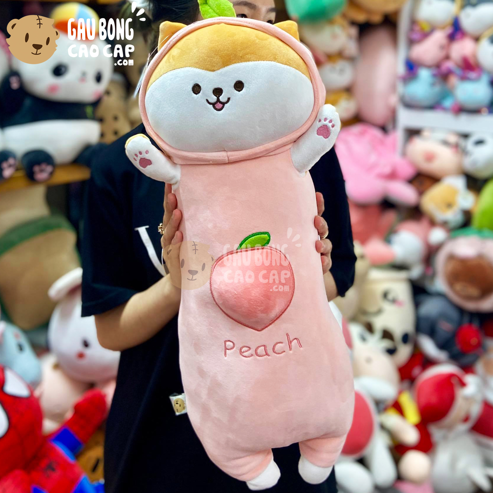 Chó Bông Shiba cosplay trái đào dạng gối ôm đang nằm trong danh sách những sản phẩm Gấu Bông Thú Bông BÁN CHẠY và đang được các bạn trẻ YÊU THÍCH NHẤT.
