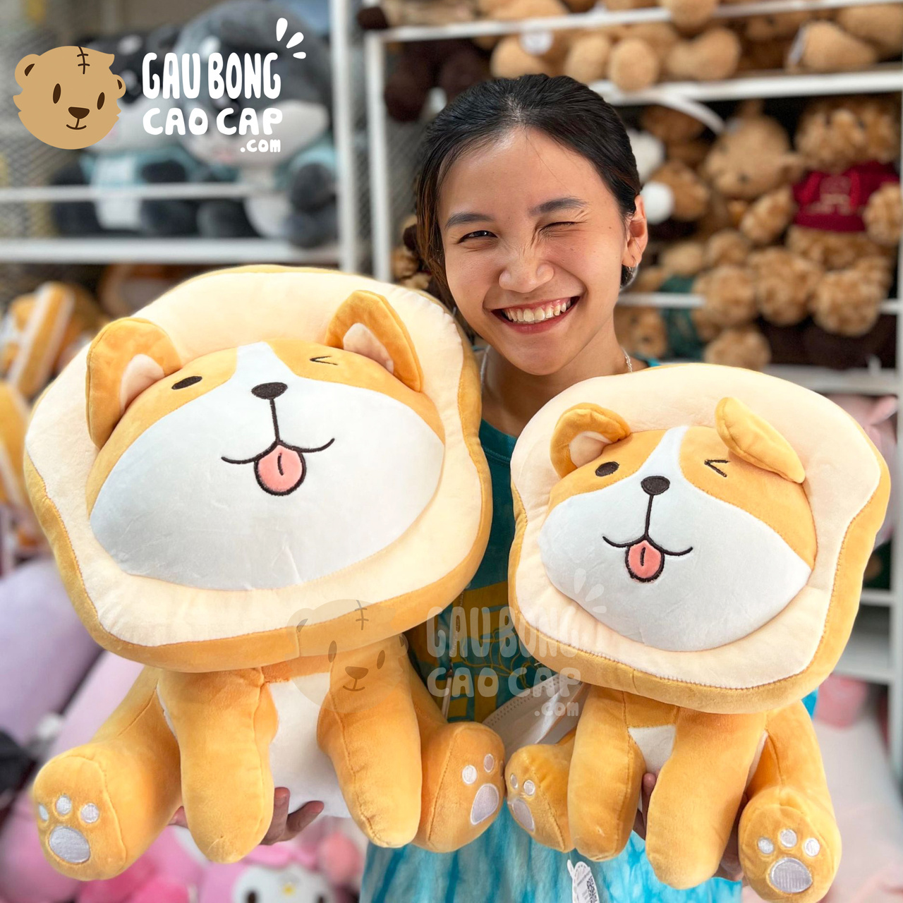 Trang Chủ / Gấu Bông Cao Cấp / Thú Bông / Chó Bông / Chó Bông Shiba đeo bánh mì Sandwich