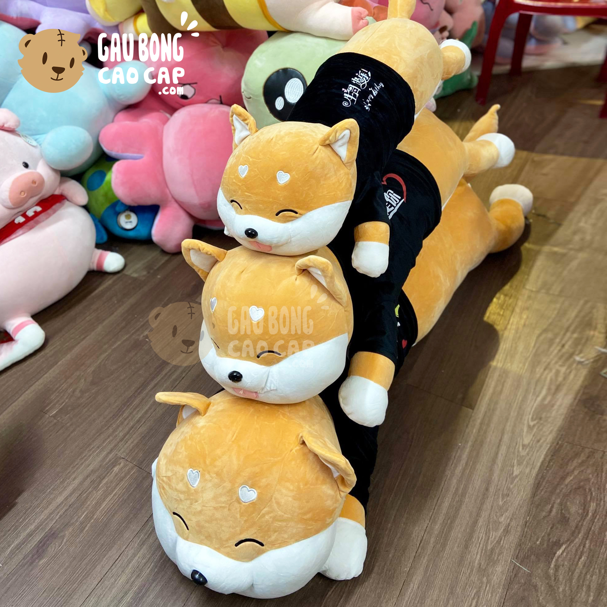 Chó Bông Shiba nằm Lè Lưỡi mặc Áo Thun Đen được thiết kế với 3 kích thước Gấu Bông lớn nhỏ khác nhau: 90cm, 1m1, 1m5