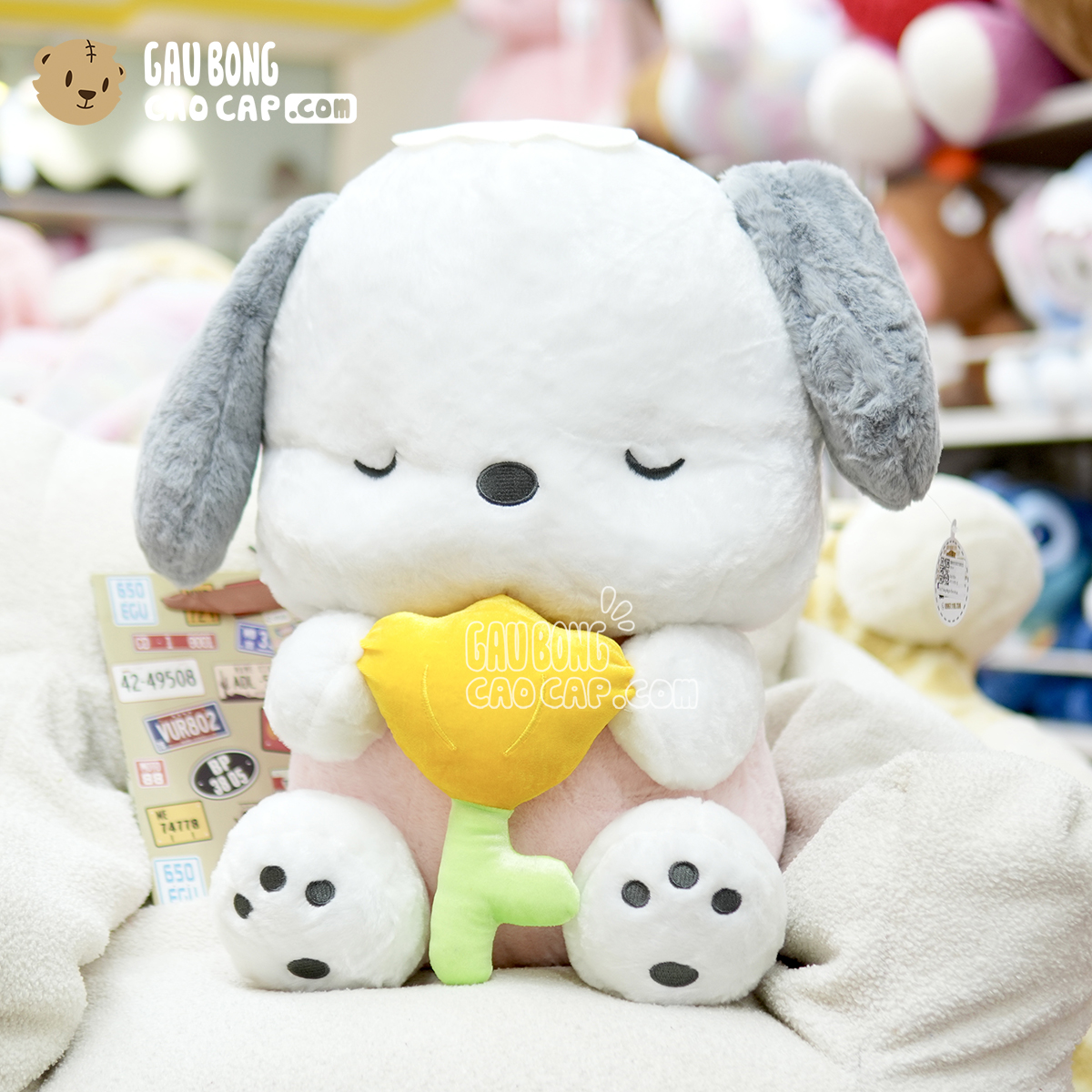 Chó Bông trắng ôm Hoa đang nằm trong danh sách những sản phẩm Gấu Bông Chó Bông BÁN CHẠY và đang được các bạn trẻ YÊU THÍCH NHẤT.