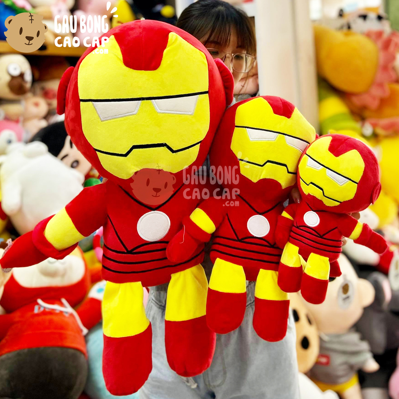 Gấu Bông Avengers IRON MAN được thiết kế với 3 kích thước Gấu Bông lớn nhỏ khác nhau: 25cm, 40cm, 60cm