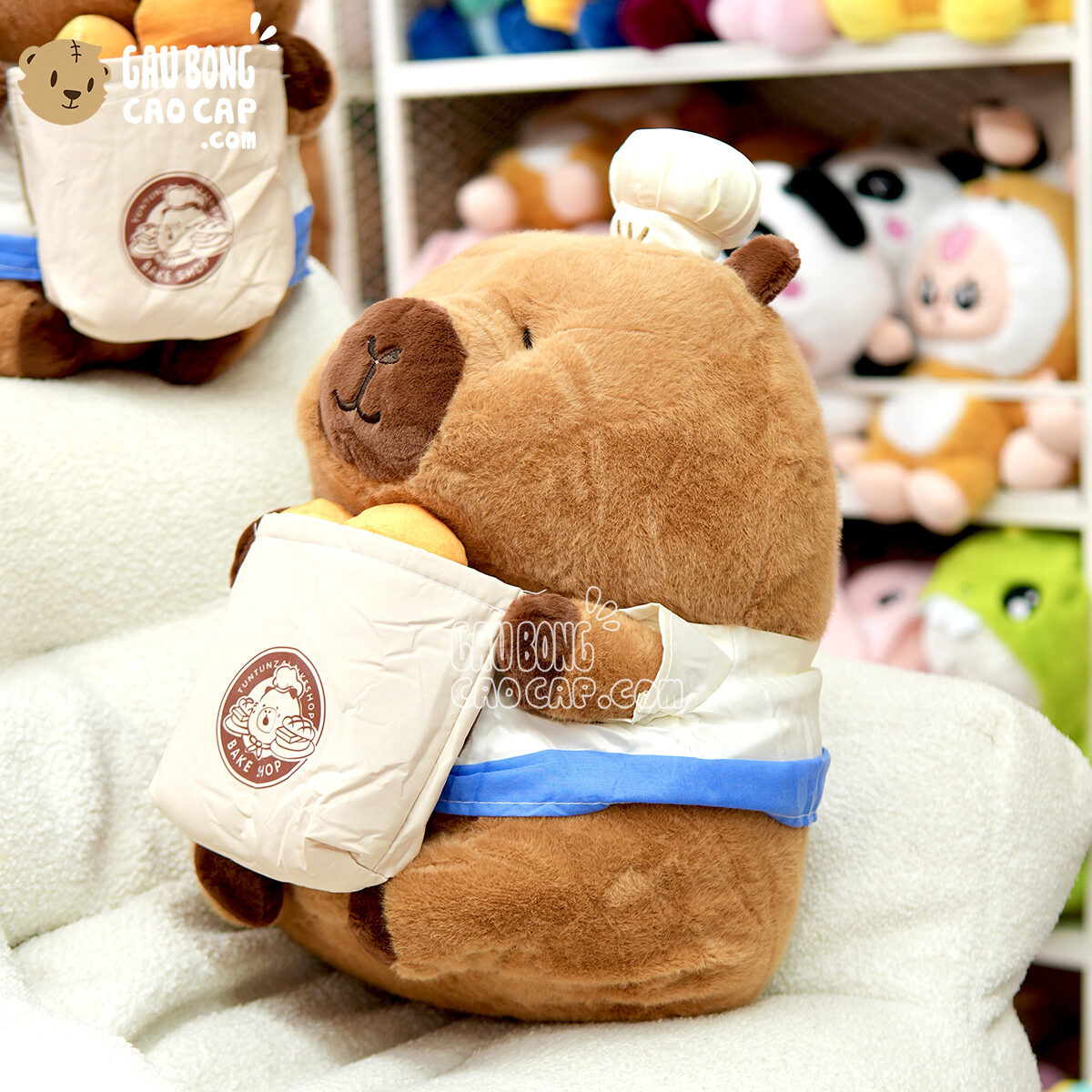 Hình ảnh Gấu Bông Capybara đầu bếp bánh mì, hình ảnh này là hình THẬT do Shop TỰ CHỤP.