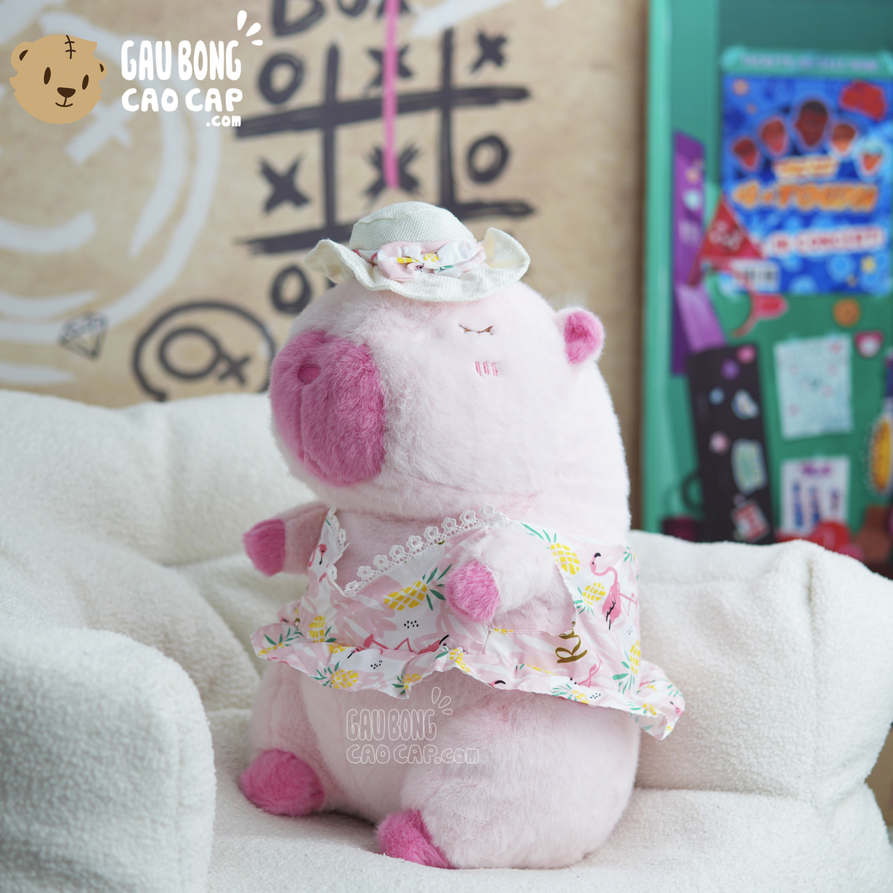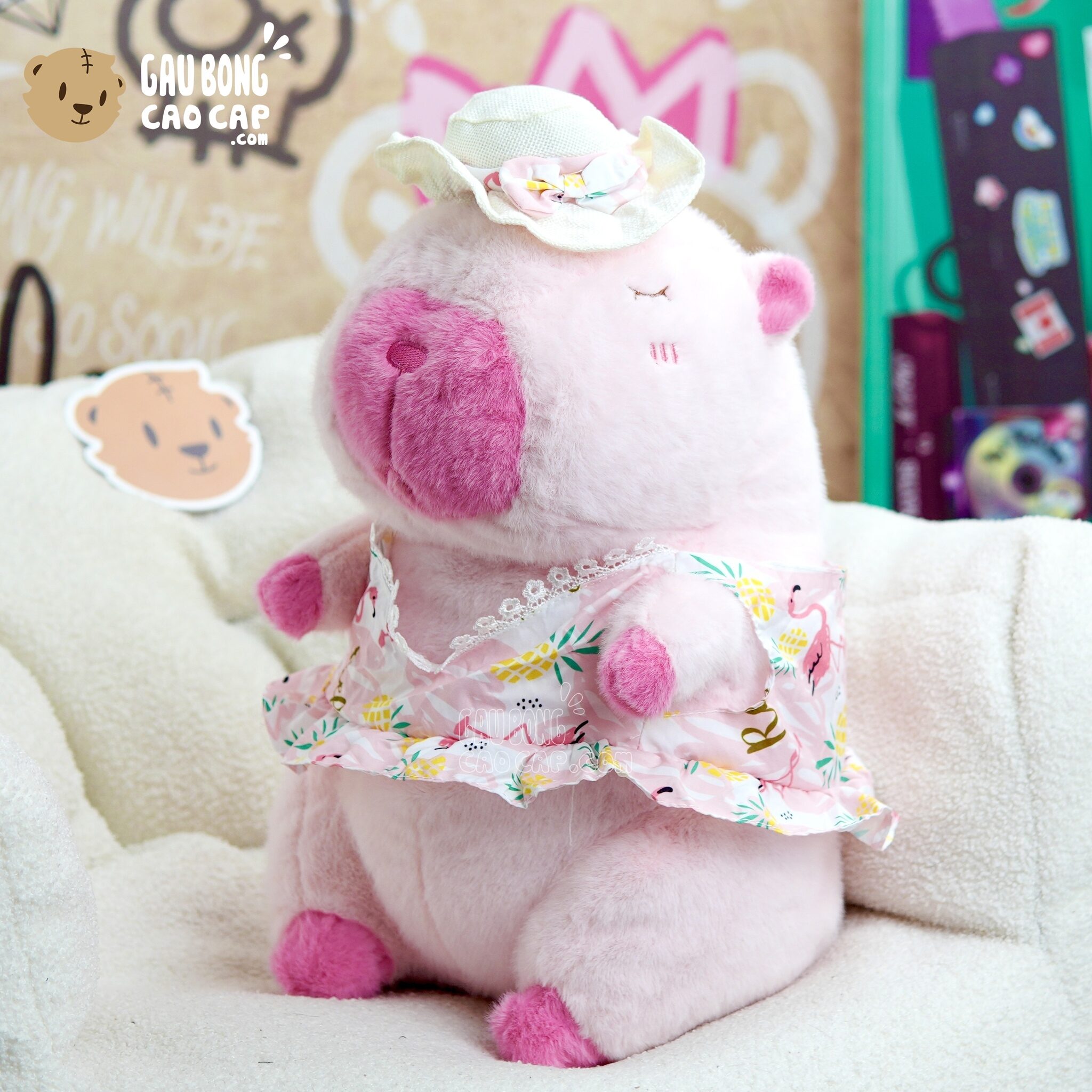 Trang Chủ / Gấu Bông Cao Cấp / Thú Bông / Chuột Bông Capybara / Gấu Bông Capybara mặc đầm Hồng đi biển
