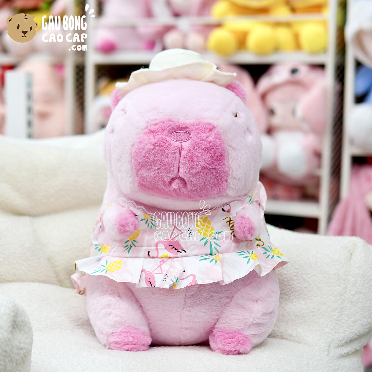 Gấu Bông Capybara mặc đầm Hồng đi biển đang nằm trong danh sách những sản phẩm Gấu Bông Chuột Bông Capybara BÁN CHẠY và đang được các bạn trẻ YÊU THÍCH NHẤT.