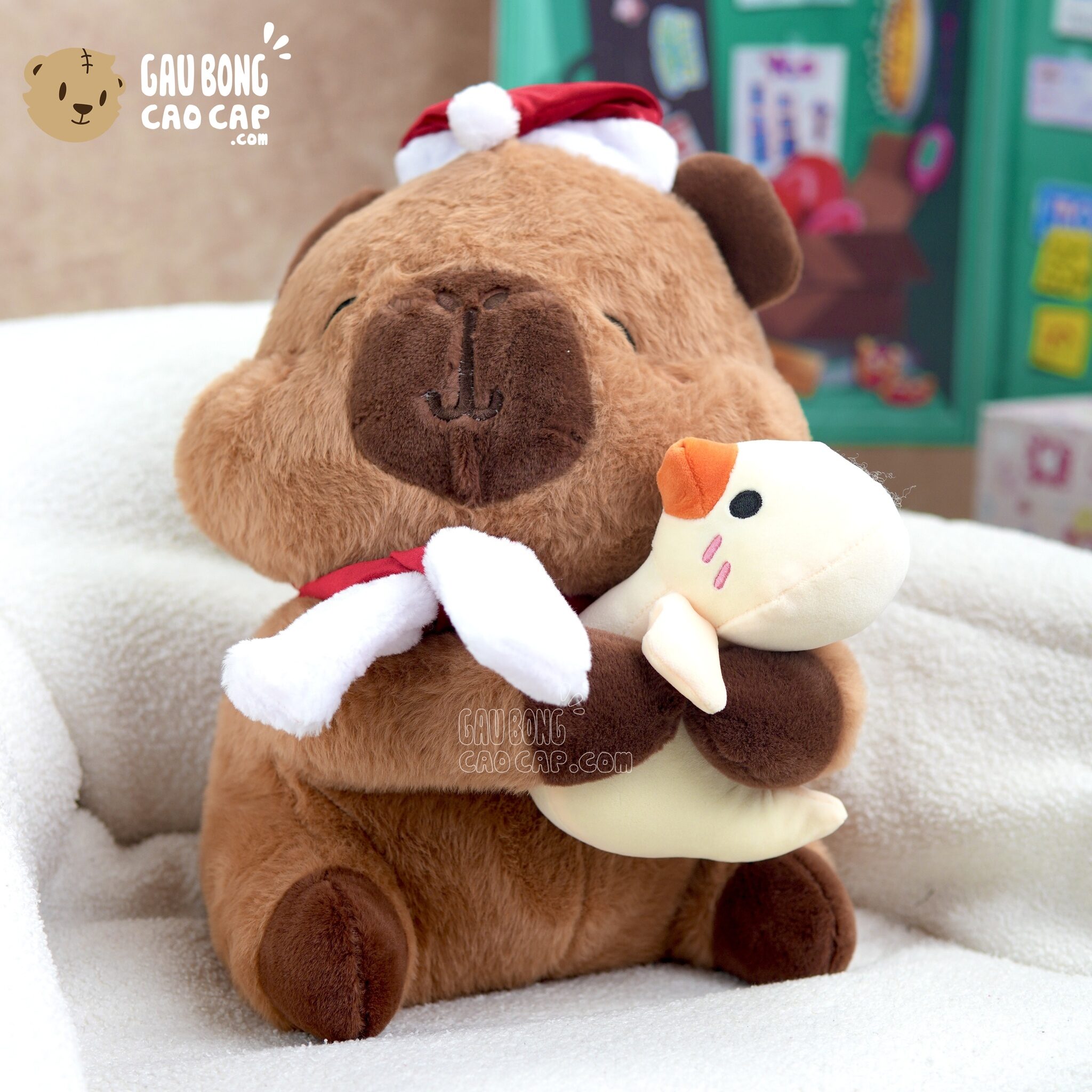 Gấu Bông Capybara ôm vịt Noel - Shop Gấu Bông Noel - gaubongcaocap.com