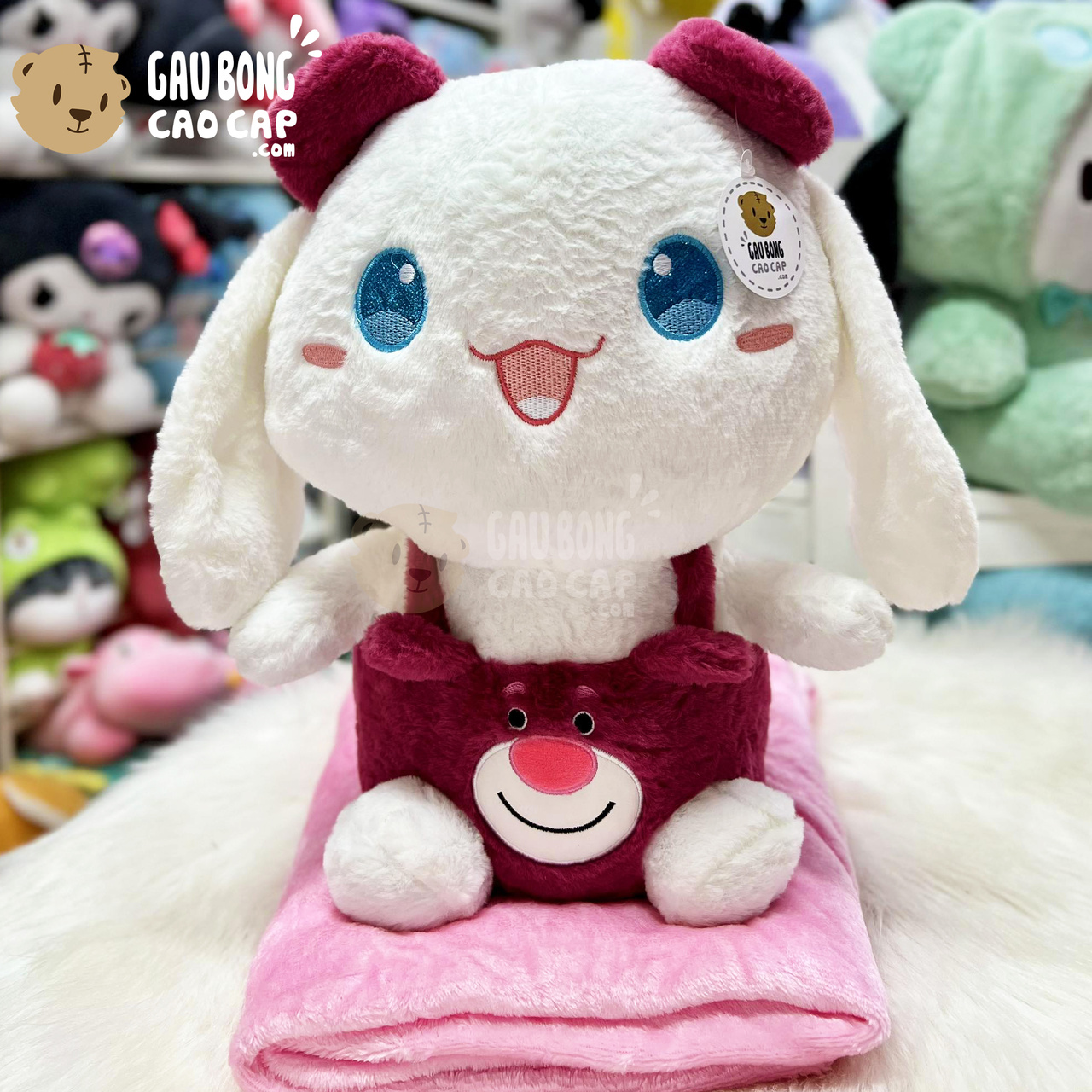 Trang Chủ / Gấu Bông Cao Cấp / Thú Bông / Thỏ Bông / Thỏ Bông Cinnamoroll / Gấu Bông Cinnamoroll Mặc Yếm Lotso có mền 2in1 – Hồng Đậm