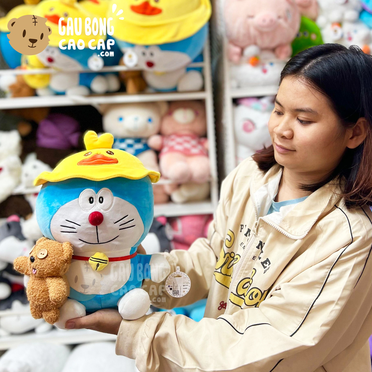 Hình ảnh Gấu Bông Doremon đội nón Vịt, hình ảnh này là hình THẬT do Shop TỰ CHỤP.