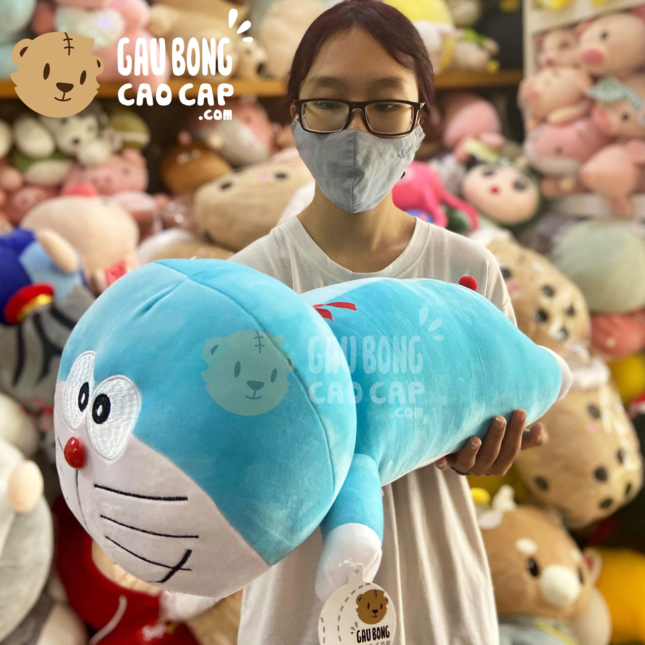 Hình ảnh Gấu Bông Doremon lông mịn gối ôm dài, hình ảnh này là hình THẬT do Shop TỰ CHỤP.