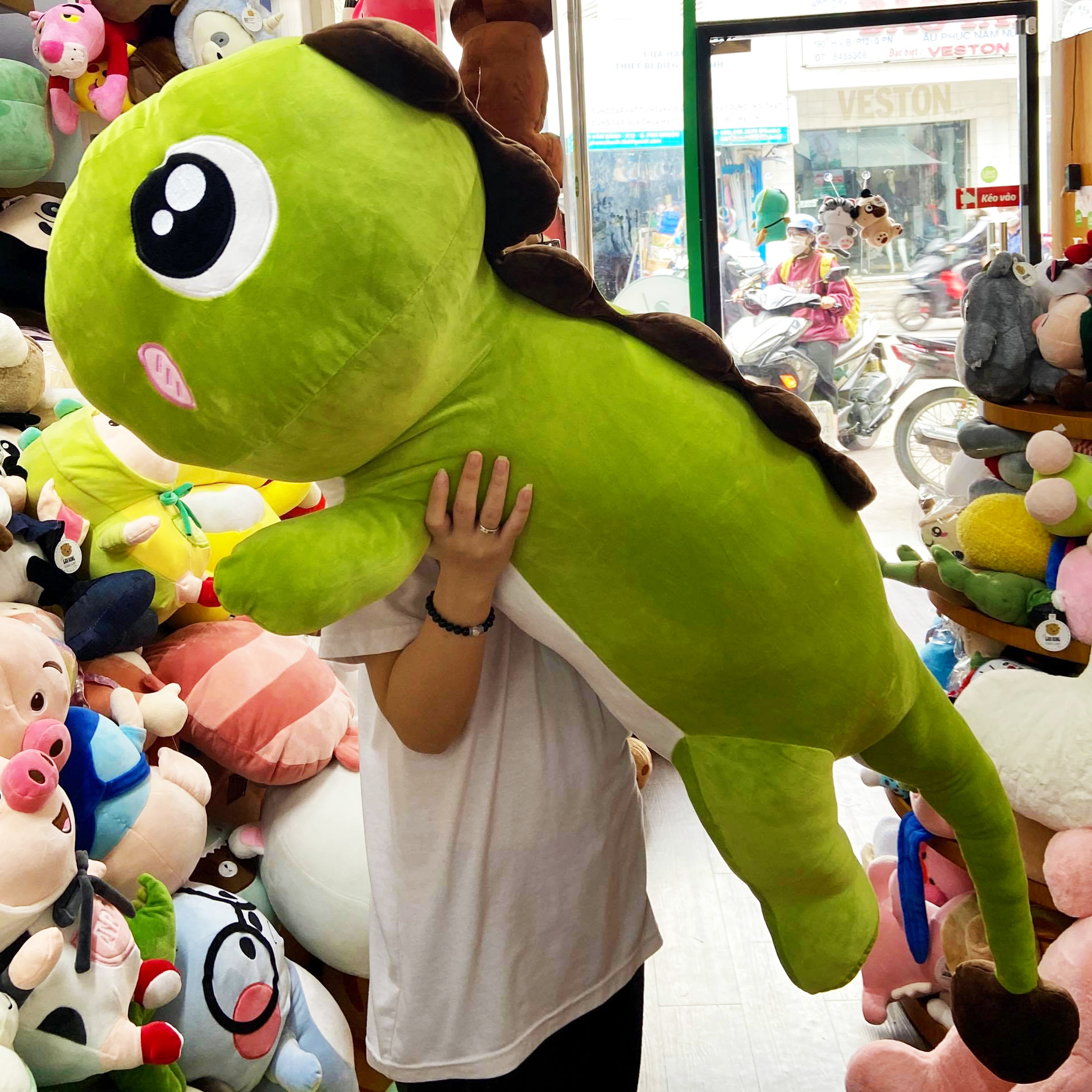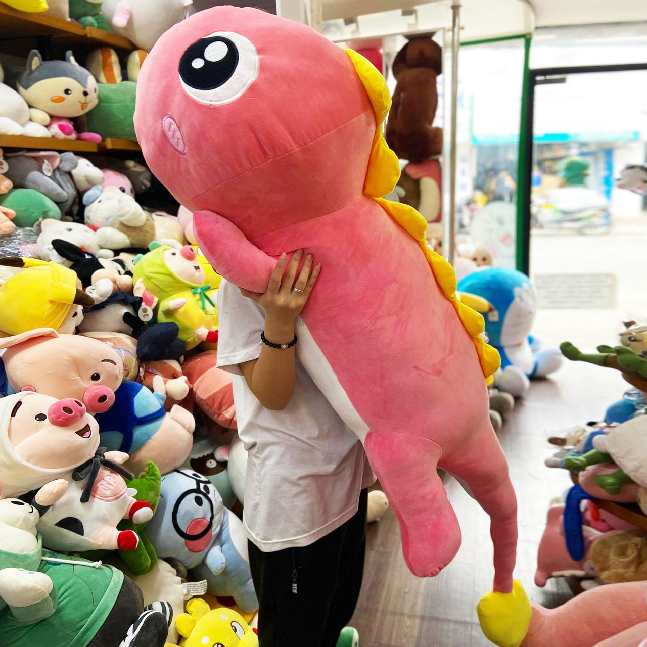 Hình ảnh Gấu Bông Khủng Long lông mịn gối ôm dài, hình ảnh này là hình THẬT do Shop TỰ CHỤP.
