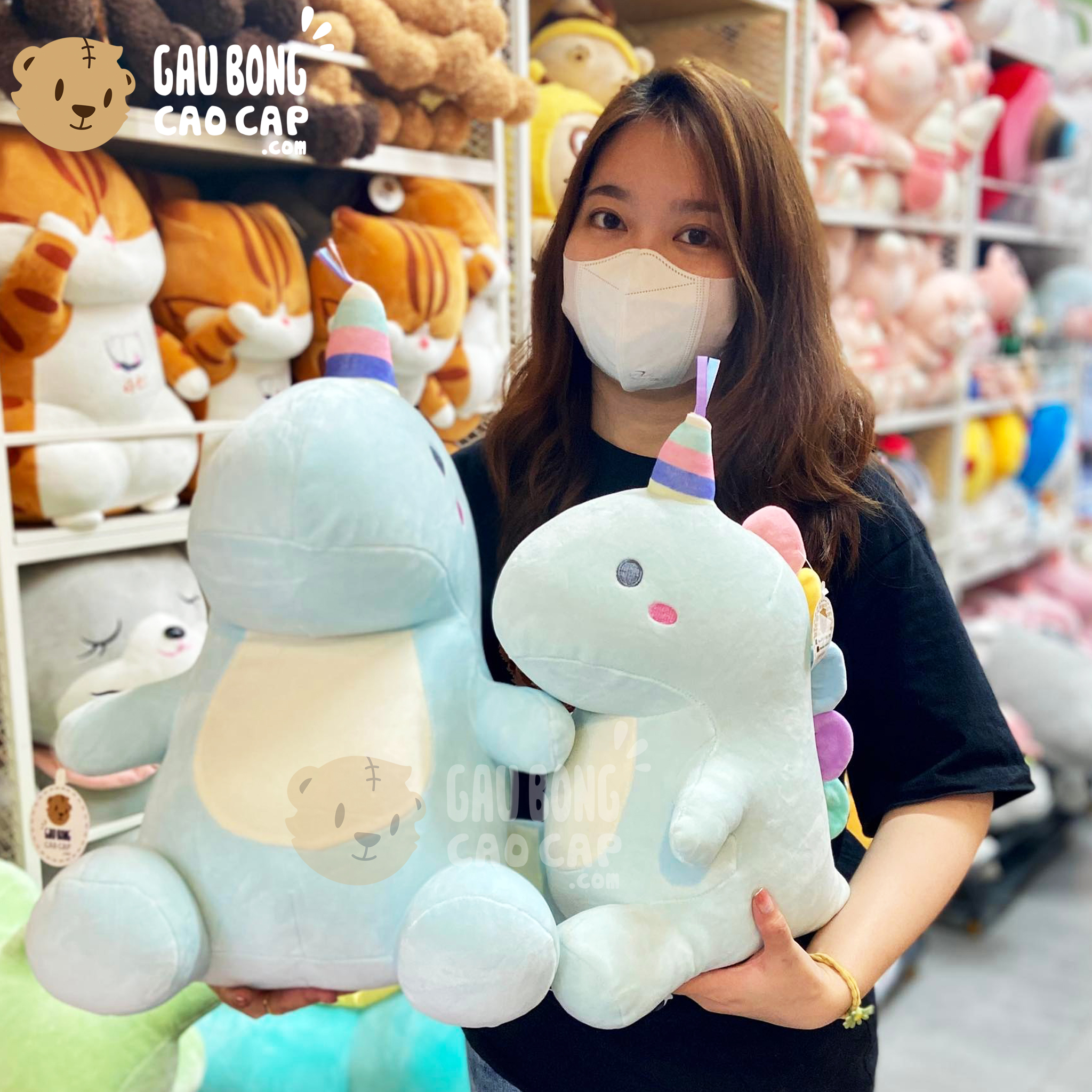 Gấu Bông Khủng Long ngồi đội Nón Cầu Vồng được thiết kế với 2 kích thước Gấu Bông lớn nhỏ khác nhau: 40cm, 50cm