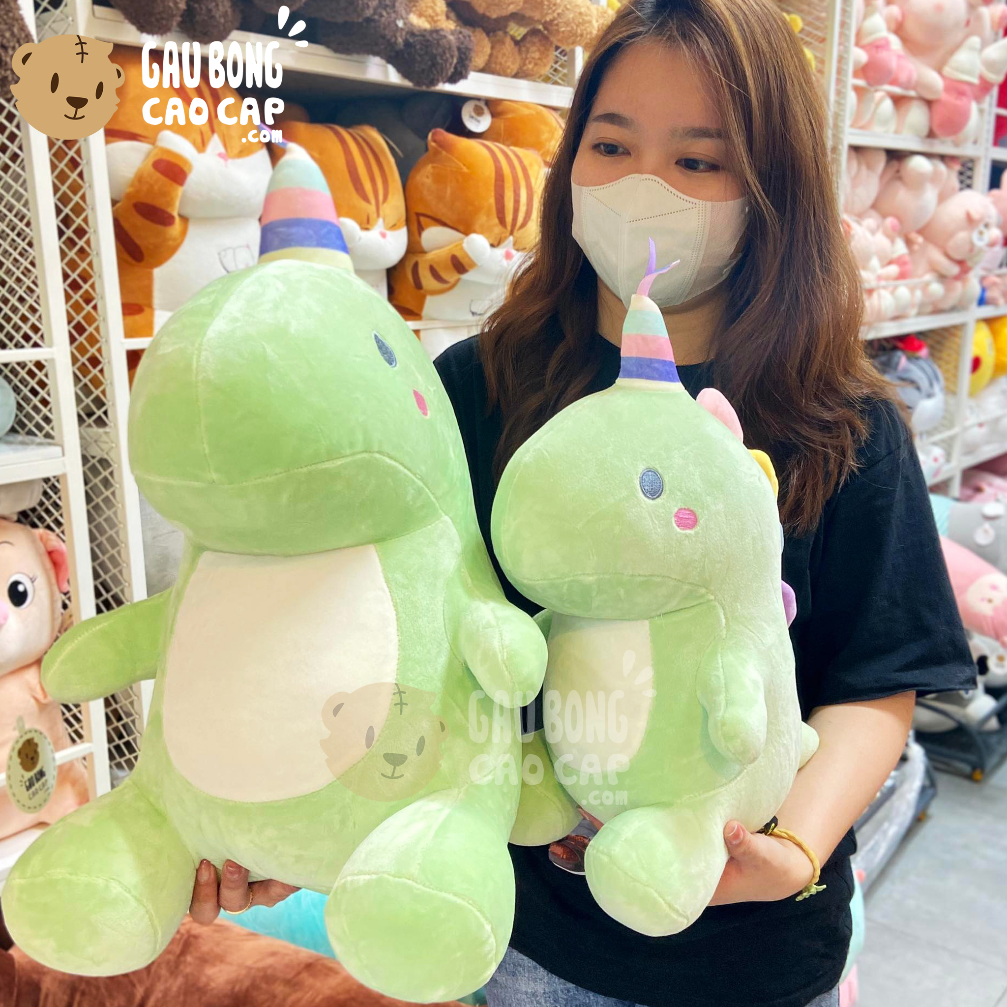 Gấu Bông Khủng Long ngồi đội Nón Cầu Vồng - Shop Gấu Bông Khủng Long - gaubongcaocap.com