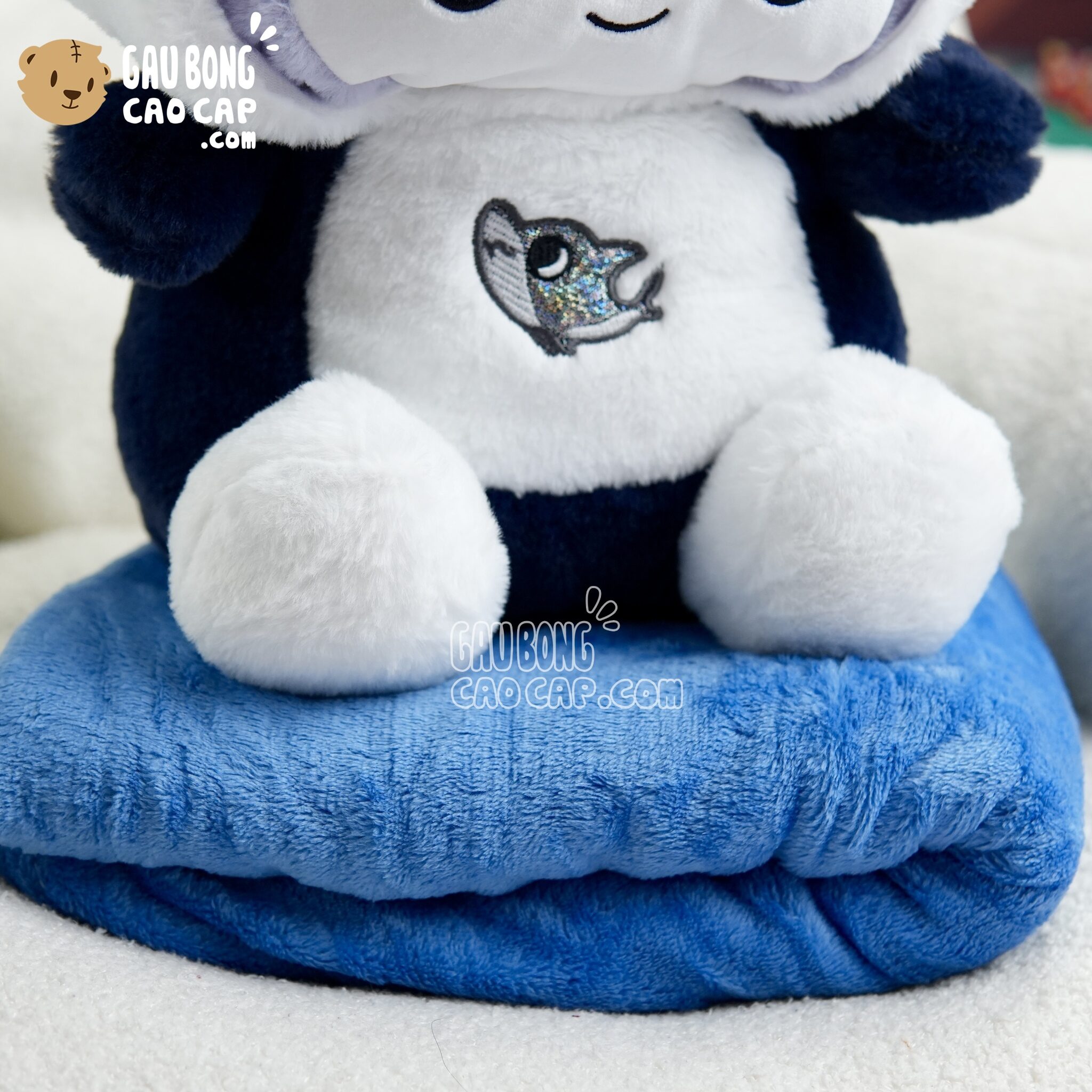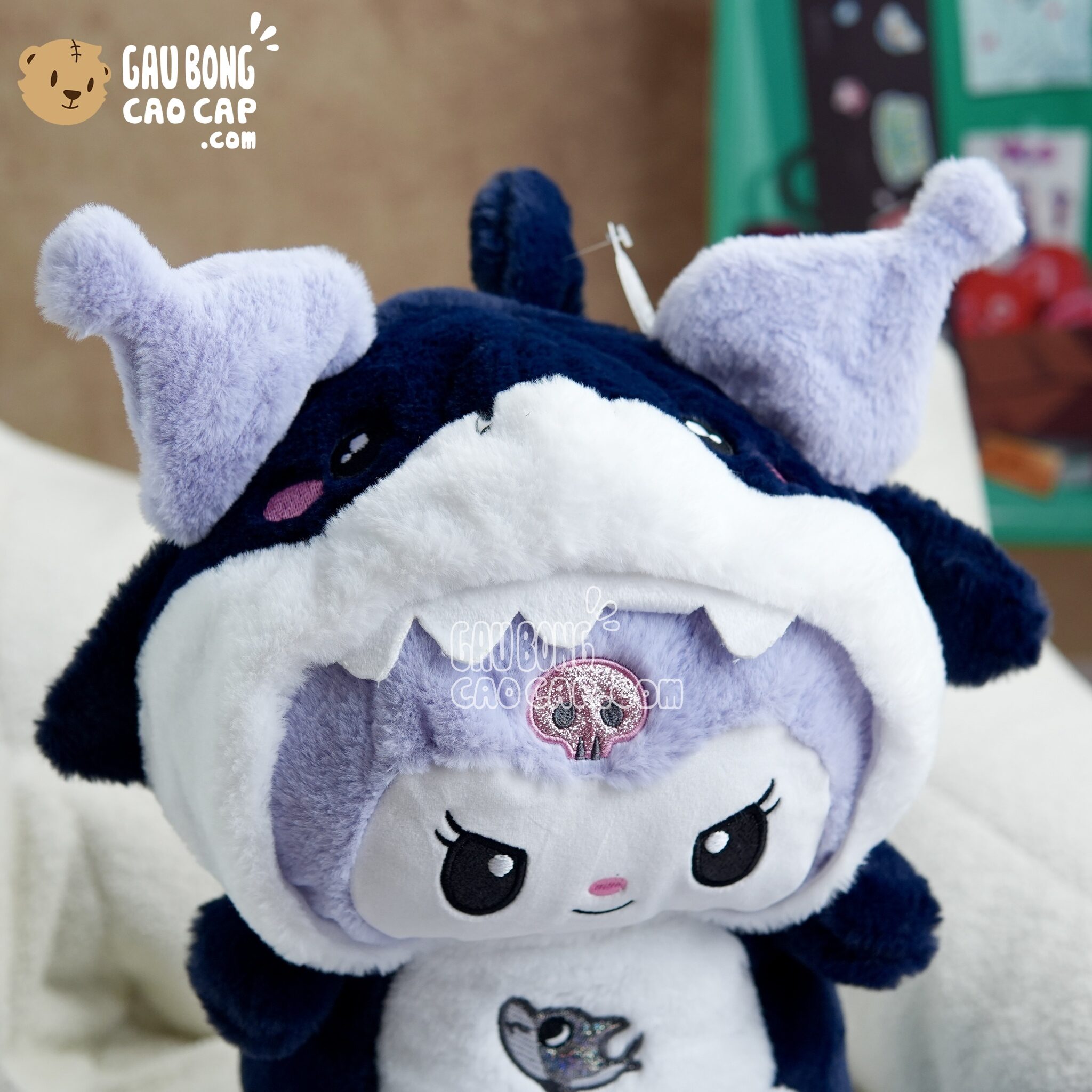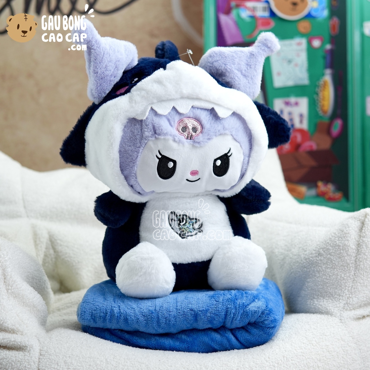 Trang Chủ / Gấu Bông Cao Cấp / Thú Bông / Thỏ Bông / Thỏ Bông Kuromi / Gấu Bông Kuromi cosplay Cá Mập có mền 2in1
