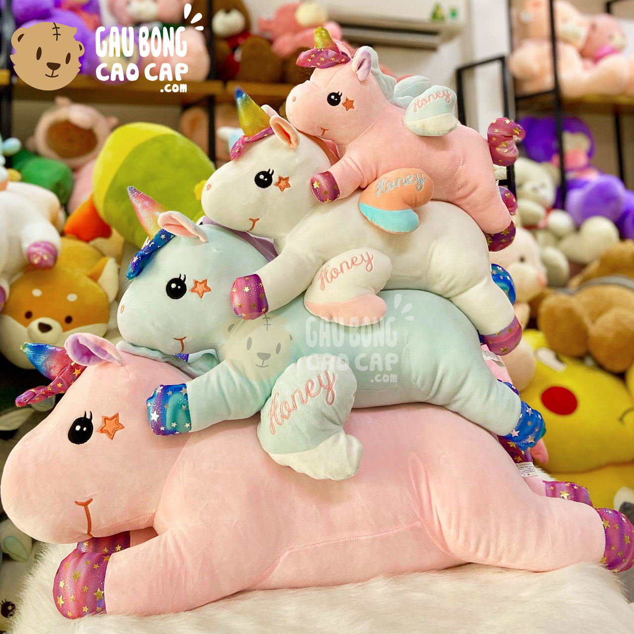 Hình ảnh Gấu Bông Kỳ Lân Unicorn Honey, hình ảnh này là hình THẬT do Shop TỰ CHỤP.