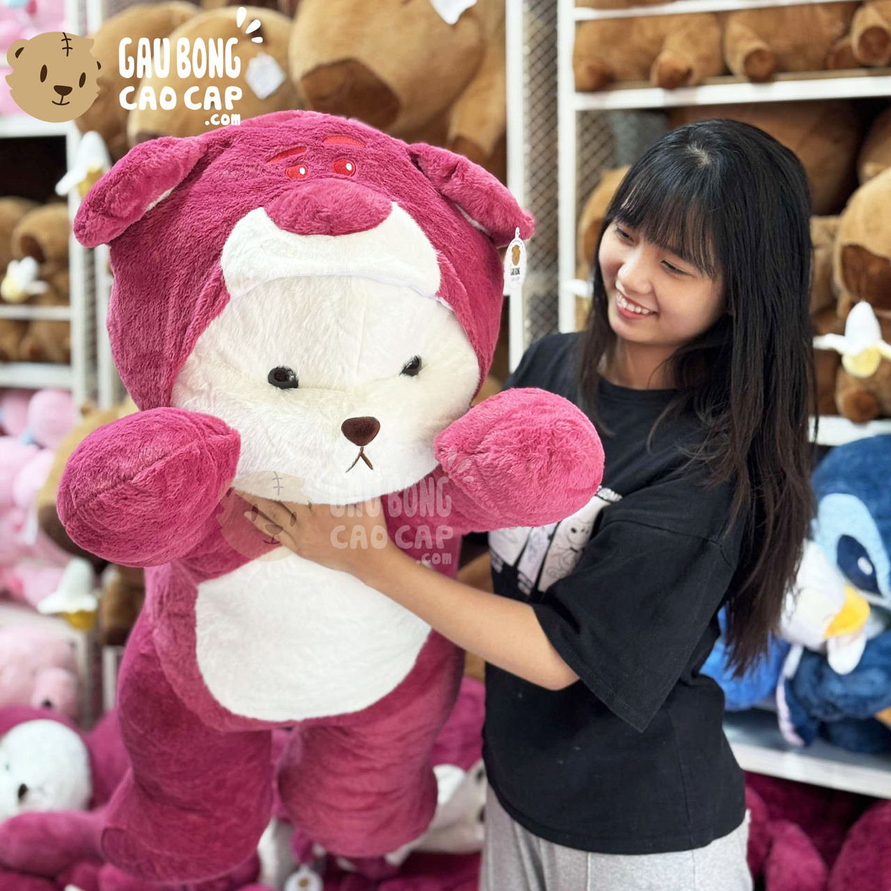 Gấu Bông Lena nằm cosplay Lotso được thiết kế với 3 kích thước Gấu Bông lớn nhỏ khác nhau: 40cm, 55cm, 1m1
