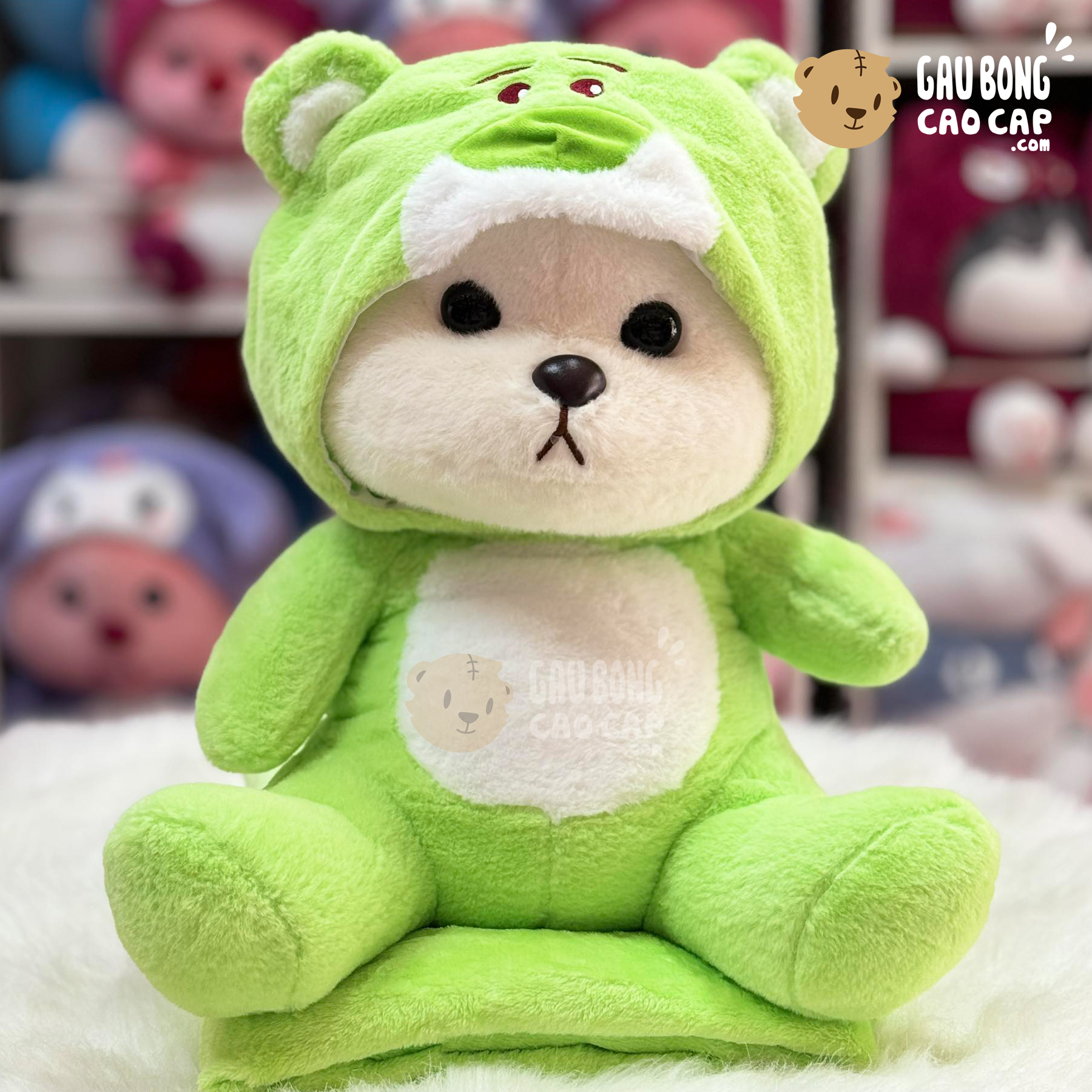 Gấu Bông Lena ngồi cosplay Lotso xanh lá có mền 2in1 - Shop Gấu Bông Lena - gaubongcaocap.com