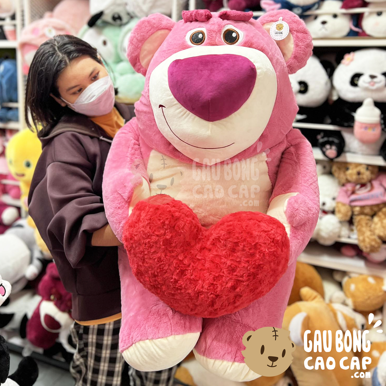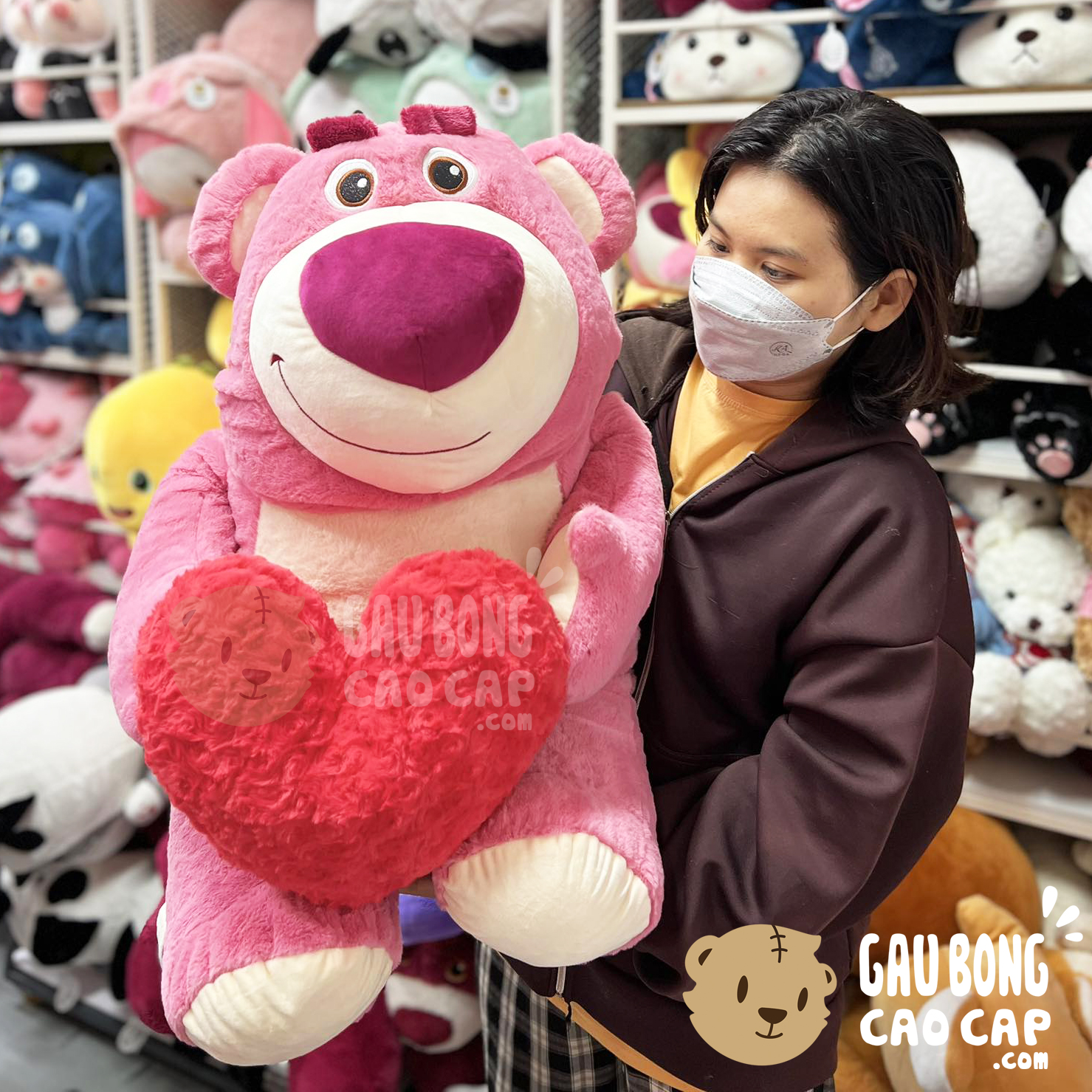 Gấu Bông Lotso lông Smooth ngồi ôm Tim được thiết kế với 4 kích thước Gấu Bông lớn nhỏ khác nhau: 50cm, 60cm, 80cm, 105cm