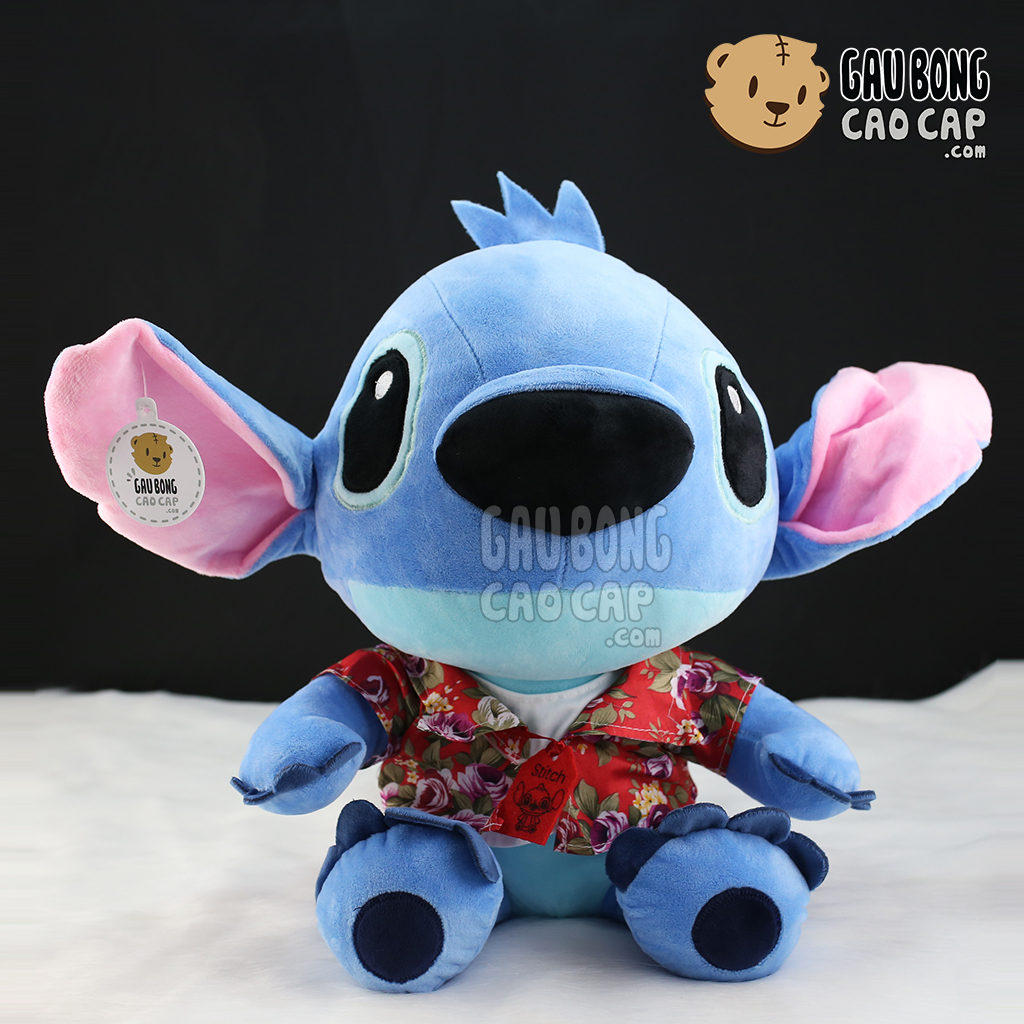 Gấu bông Stitch phiên bản vô cùng dễ thương với phong cách Hawaii, với sự kết hợp giữa màu xanh gấu Stitch truyền thống với với chiếc áo hoa đỏ bên ngoài.
