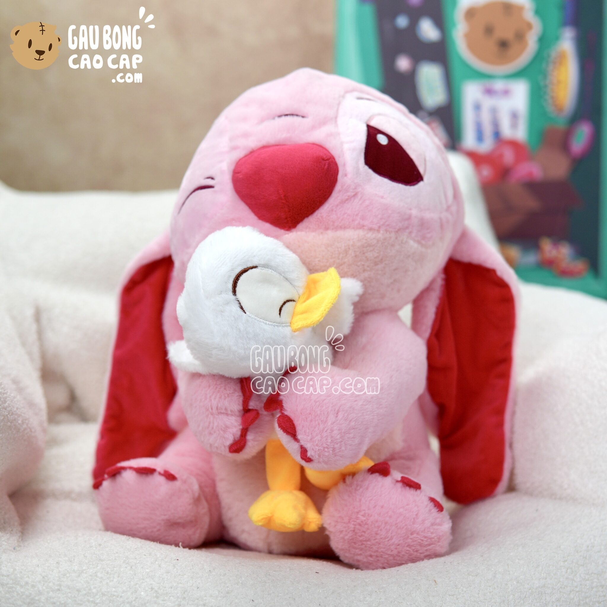 Hình ảnh Gấu Bông Stitch Hồng ôm Vịt, hình ảnh này là hình THẬT do Shop TỰ CHỤP.