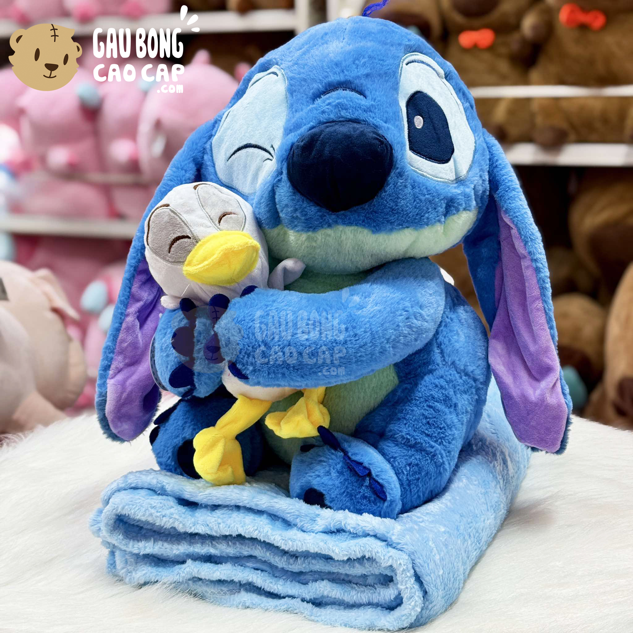 Gấu Bông Stitch ôm Vịt có mền 2in1 - 55cm - Shop Gấu Bông - gaubongcaocap.com
