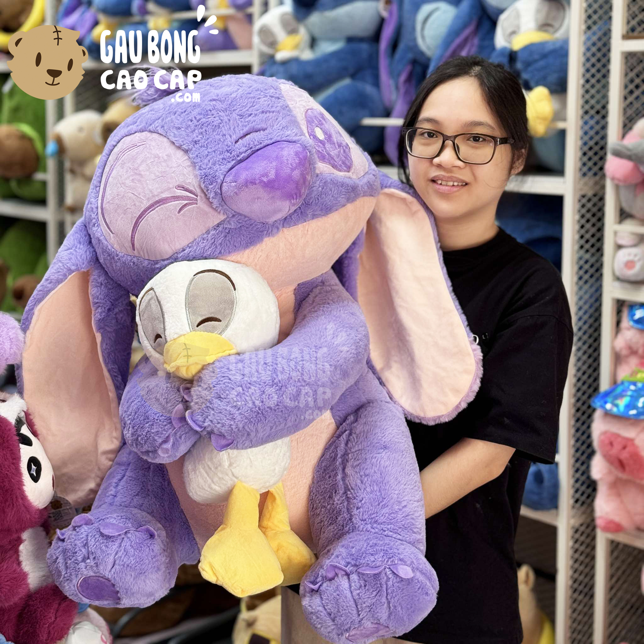 Gấu Bông Stitch Tím ôm Vịt Trắng