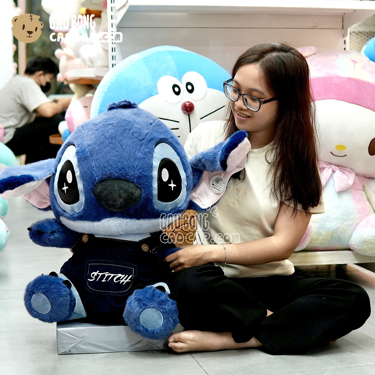 Gấu Bông Stitch Xanh Mặc Yếm Jeans được thiết kế với 5 kích thước Gấu Bông lớn nhỏ khác nhau: 35cm, 45cm, 55cm, 70cm, 90cm