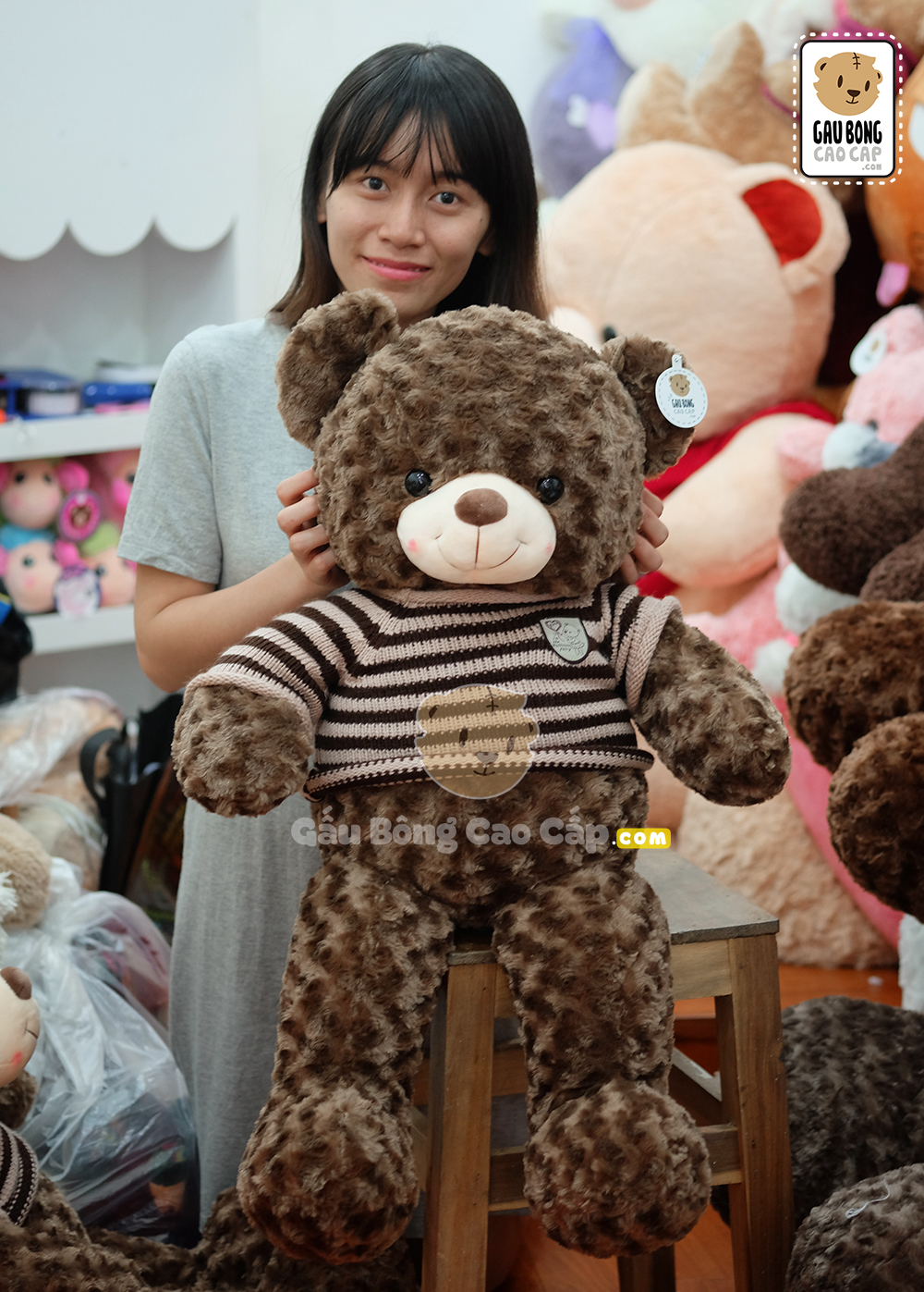 Màu sắc : Gấu teddy áo len Chocolate có bộ lông màu nâu xoắn xinh xắn – dễ thương.