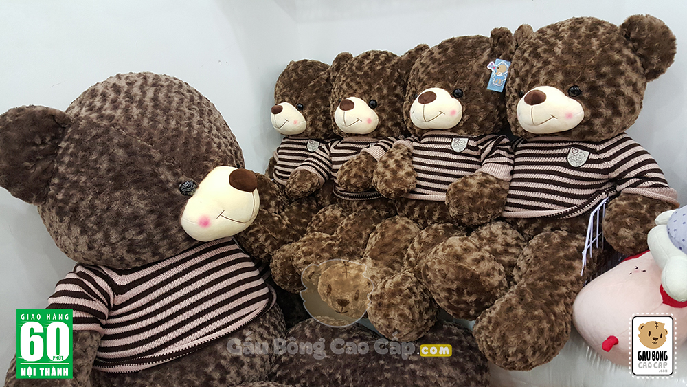 Gấu bông Teddy áo len Choco được thiết kế với 5 kích thước Gấu Bông lớn nhỏ khác nhau: 80cm, 1m, 1m2, 1m6, 2m