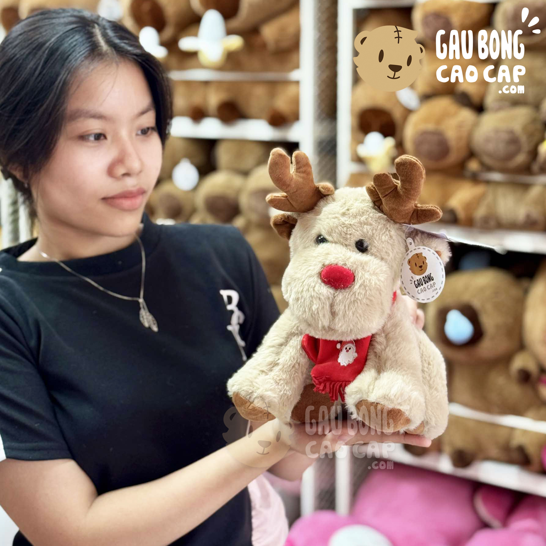 Gấu Bông Tuần Lộc choàng khăn đỏ đang nằm trong danh sách những sản phẩm Gấu Bông Noel BÁN CHẠY và đang được các bạn trẻ YÊU THÍCH NHẤT.