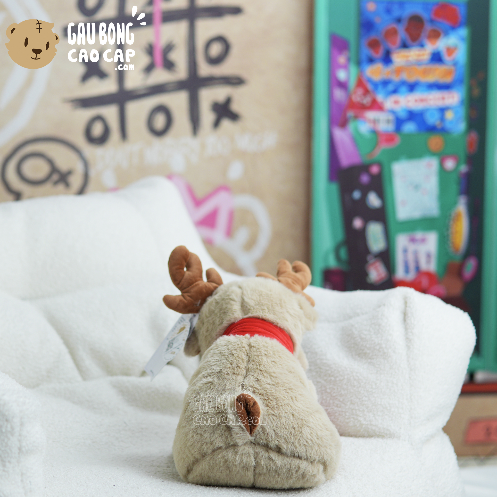 Hình ảnh Gấu Bông Tuần Lộc choàng khăn đỏ, hình ảnh này là hình THẬT do Shop TỰ CHỤP.