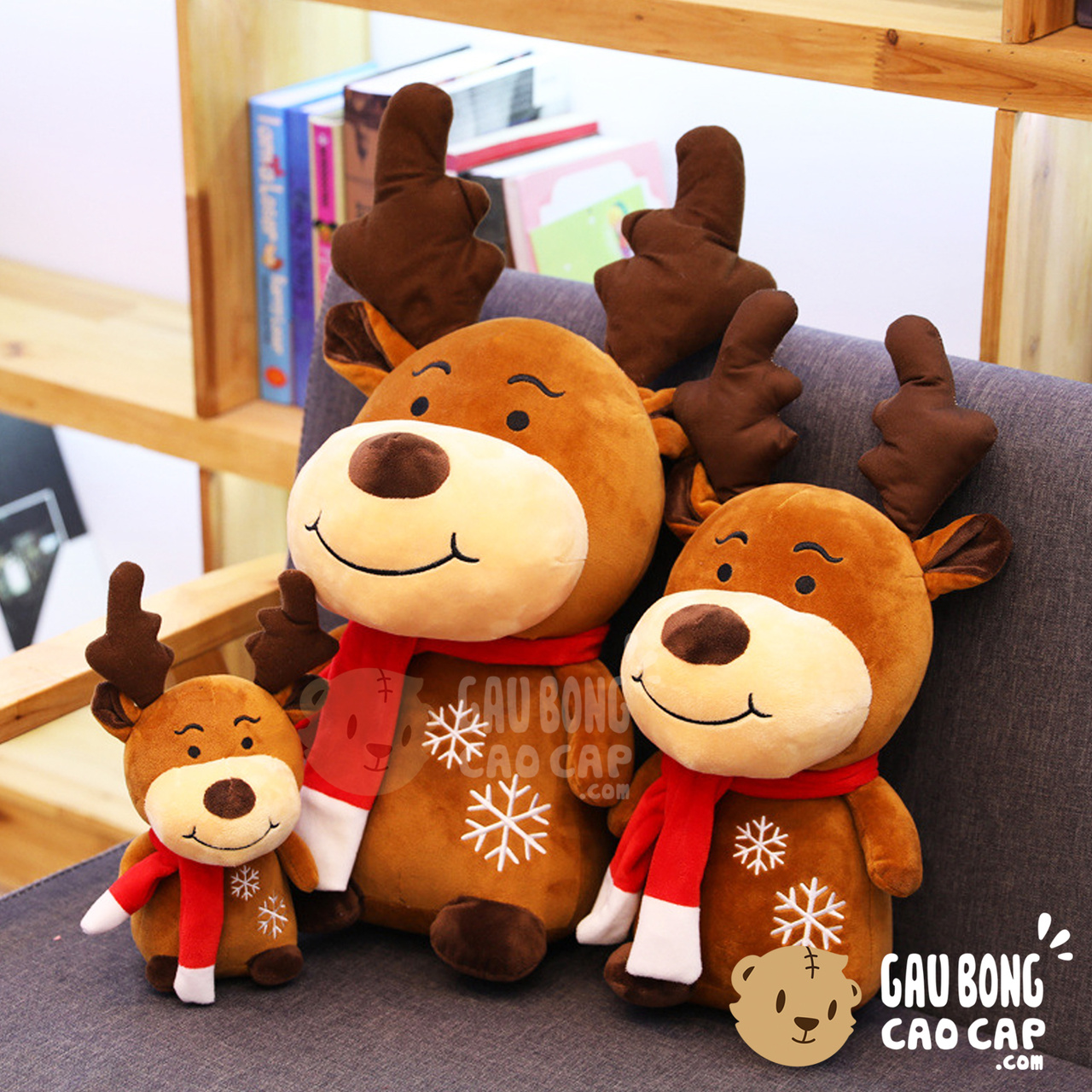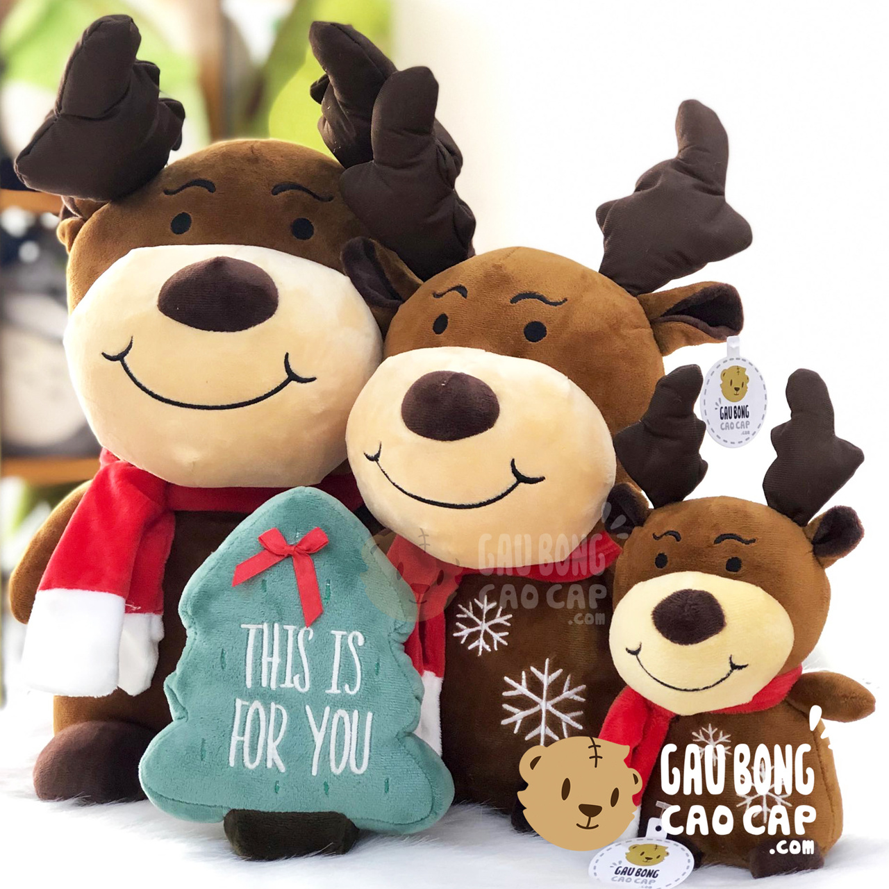 Gấu bông Tuần Lộc Noel được thiết kế với 3 kích thước Gấu Bông lớn nhỏ khác nhau: 27cm, 45cm, 55cm