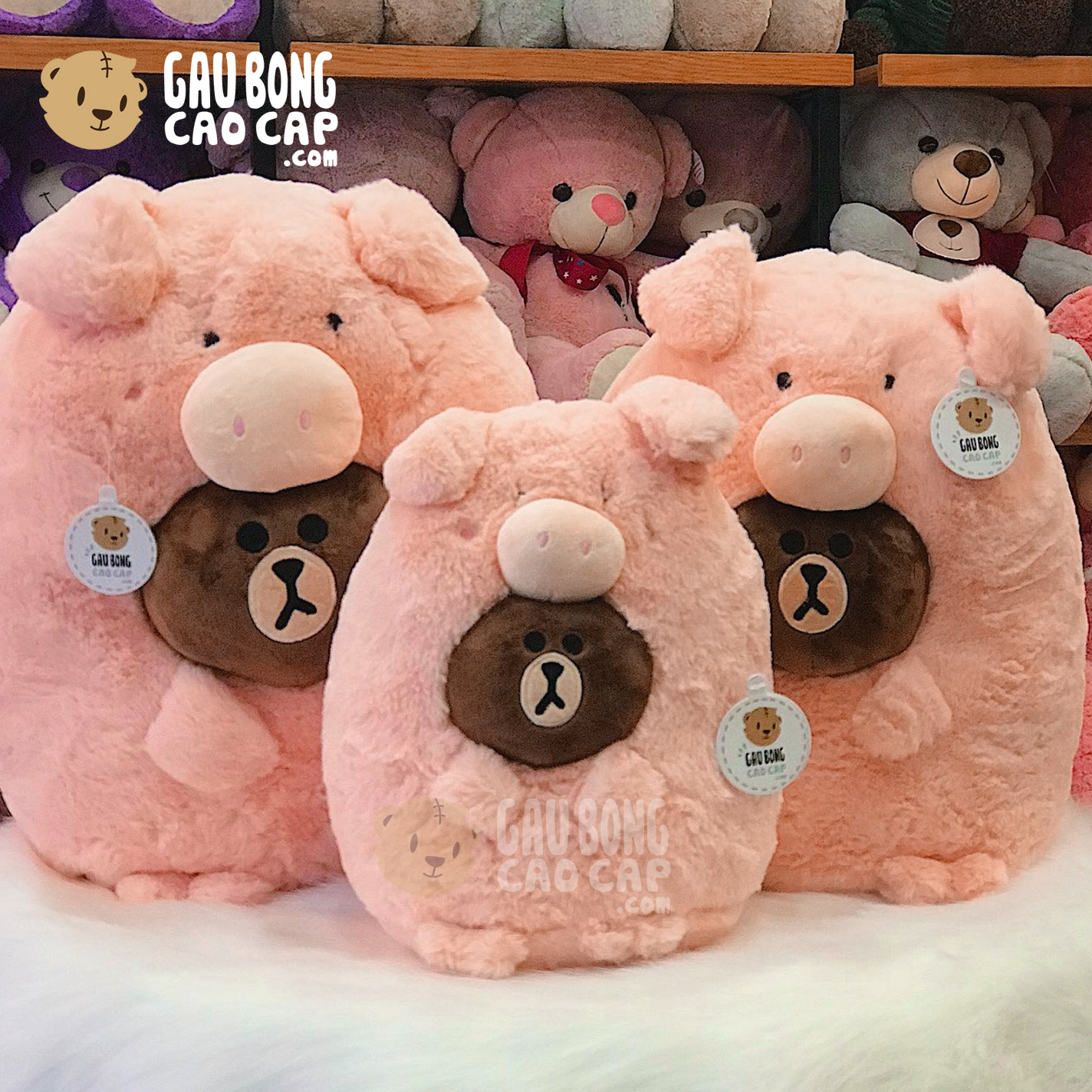 Gấu Brown cosplay Heo Bông được thiết kế với 3 kích thước Gấu Bông lớn nhỏ khác nhau: 30cm, 40cm, 50cm