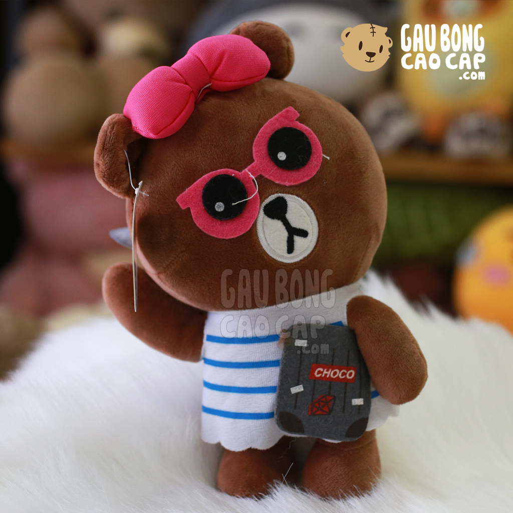 Gấu Brown đeo kích áo sọc được thiết kế với 1 kích thước Gấu Bông lớn nhỏ khác nhau: 20cm