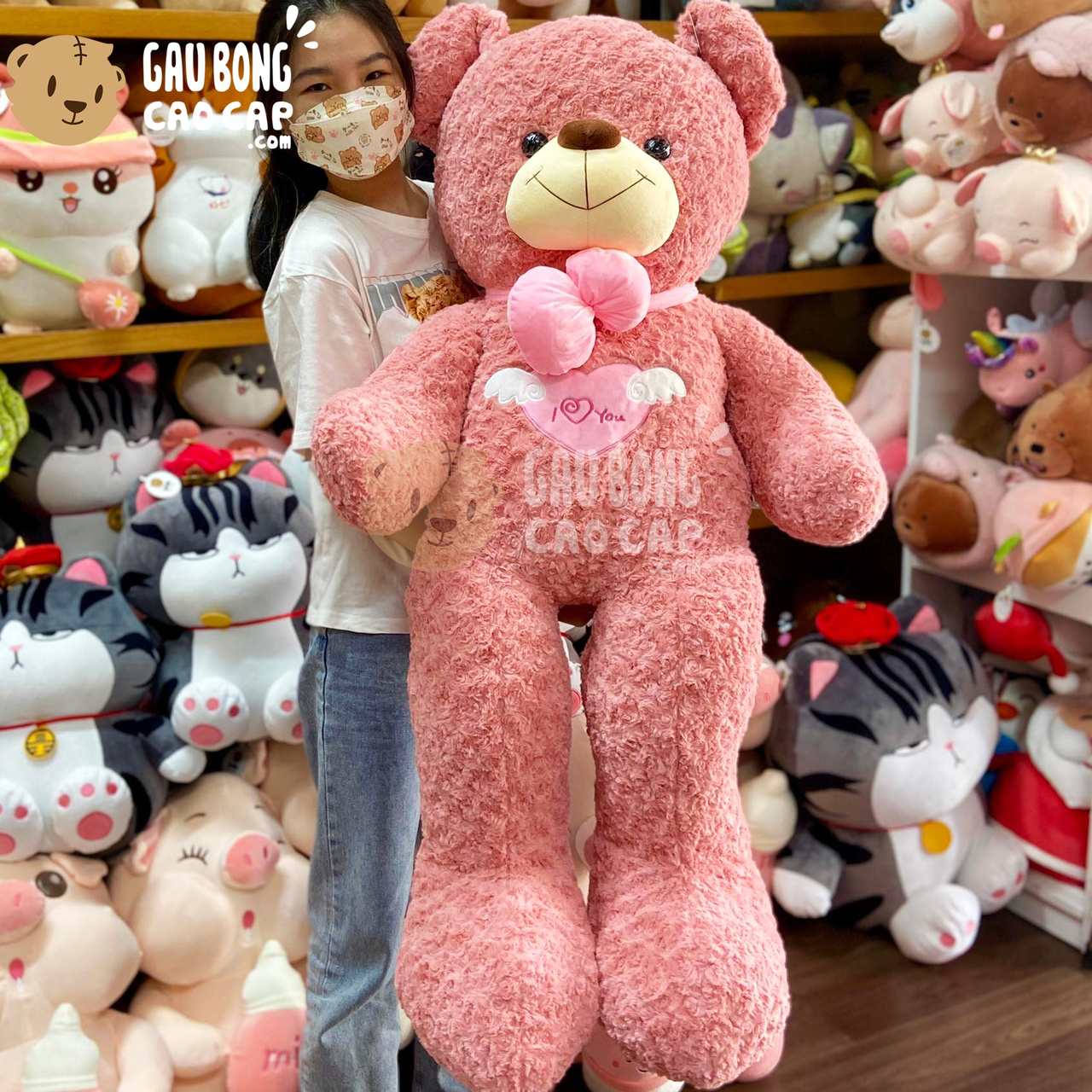 Gấu Teddy Angel - Màu Hồng được thiết kế với 4 kích thước Gấu Bông lớn nhỏ khác nhau: 90cm, 1m1, 1m4, 1m6