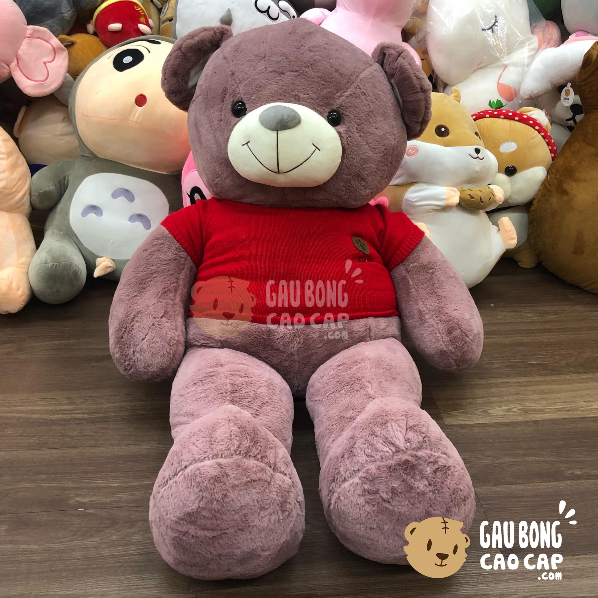 Gấu Teddy Hồng lông Smooth mặc áo len logo Chân Gấu được thiết kế với 1 kích thước Gấu Bông lớn nhỏ khác nhau: 1m3