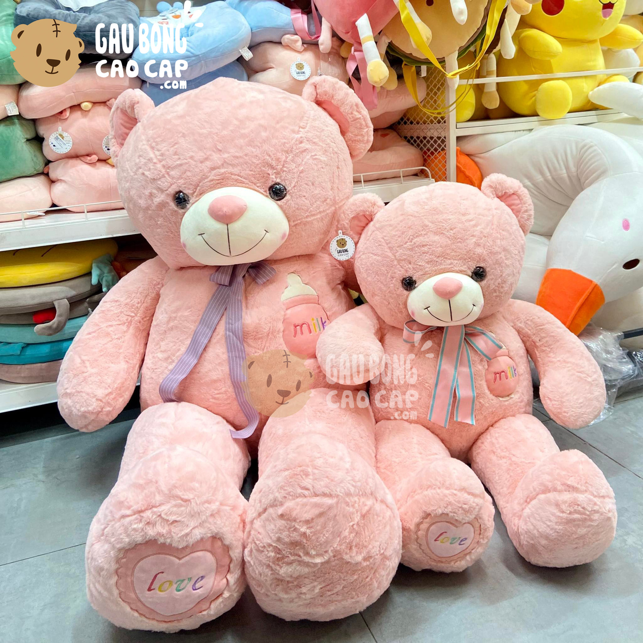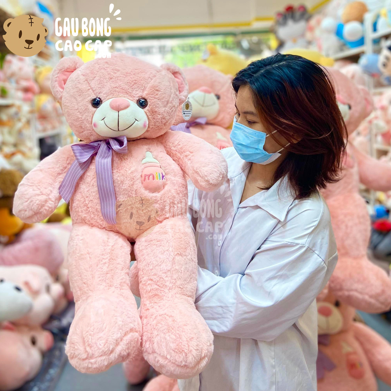 Gấu Teddy lông Smooth ngực thêu Bình Sữa được thiết kế với 2 kích thước Gấu Bông lớn nhỏ khác nhau: 75cm, 1m1