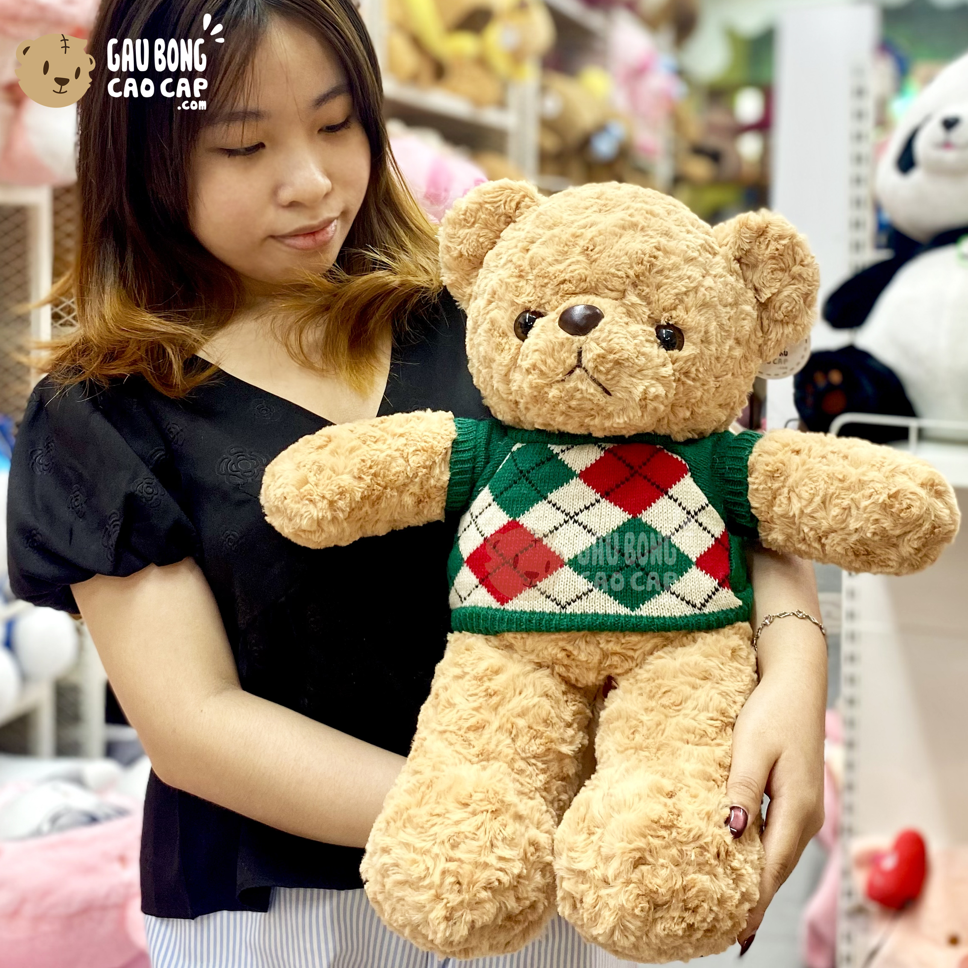 Gấu Teddy lông xoắn mặc áo len Caro được thiết kế với 1 kích thước Gấu Bông lớn nhỏ khác nhau: 55cm