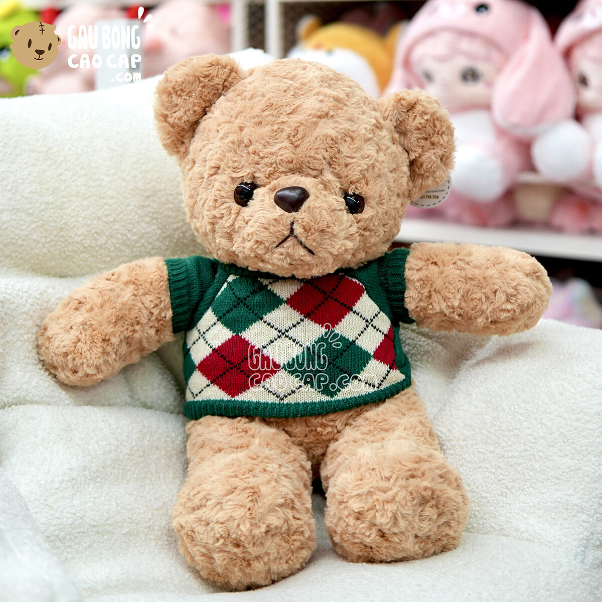 Gấu Teddy lông xoắn mặc áo len Caro đang nằm trong danh sách những sản phẩm Gấu Bông GẤU BÔNG TEDDY BÁN CHẠY và đang được các bạn trẻ YÊU THÍCH NHẤT.