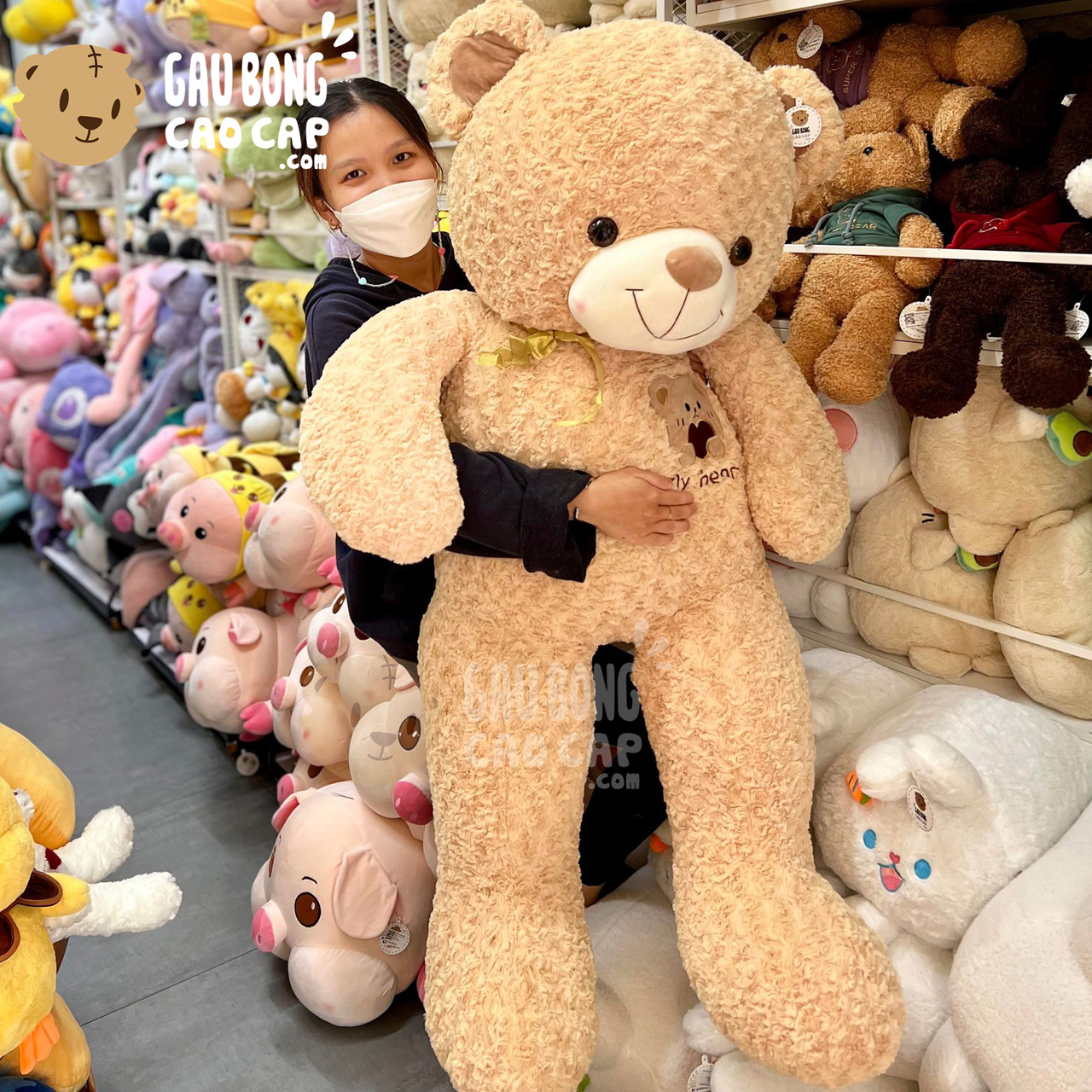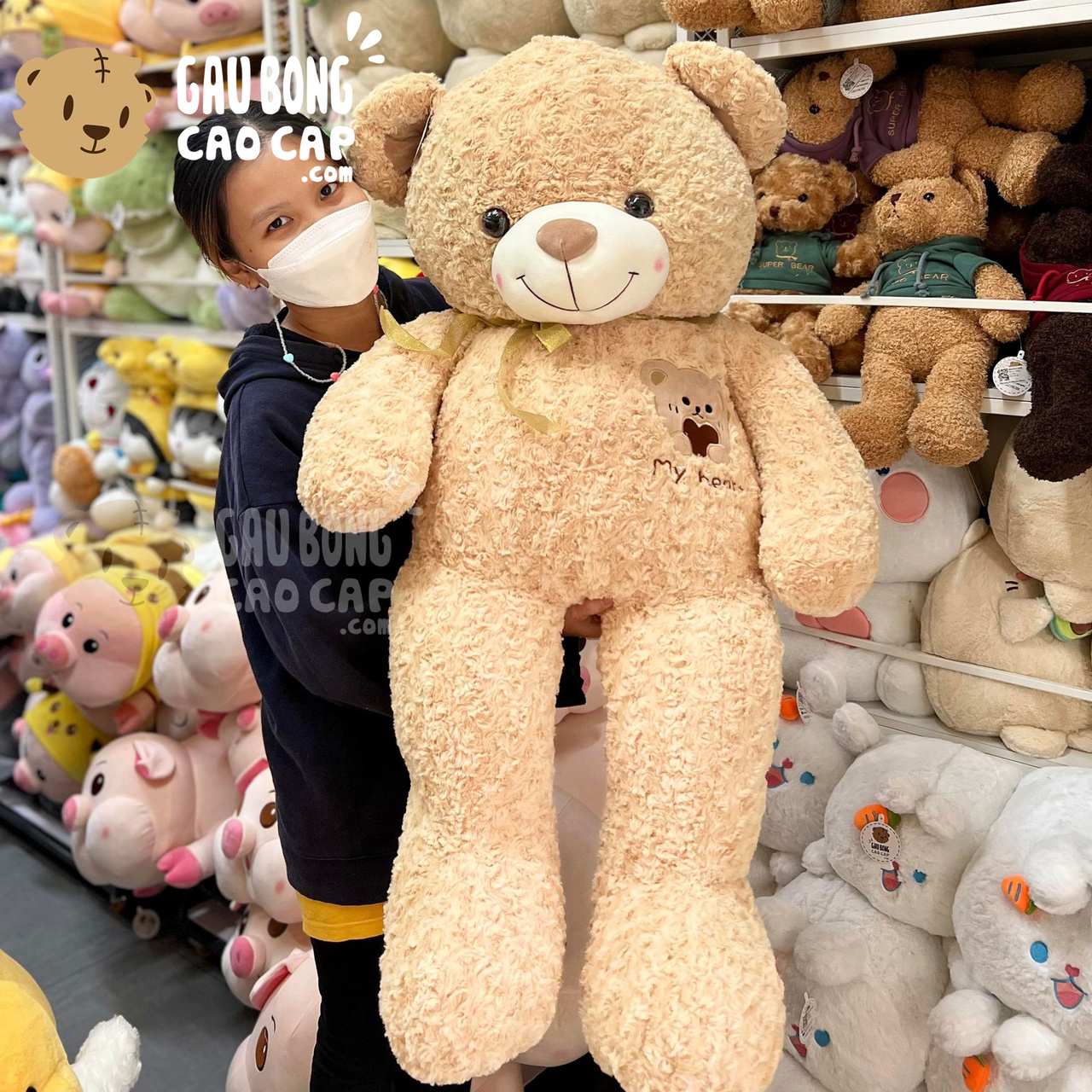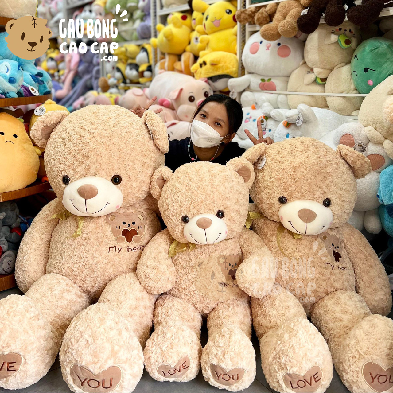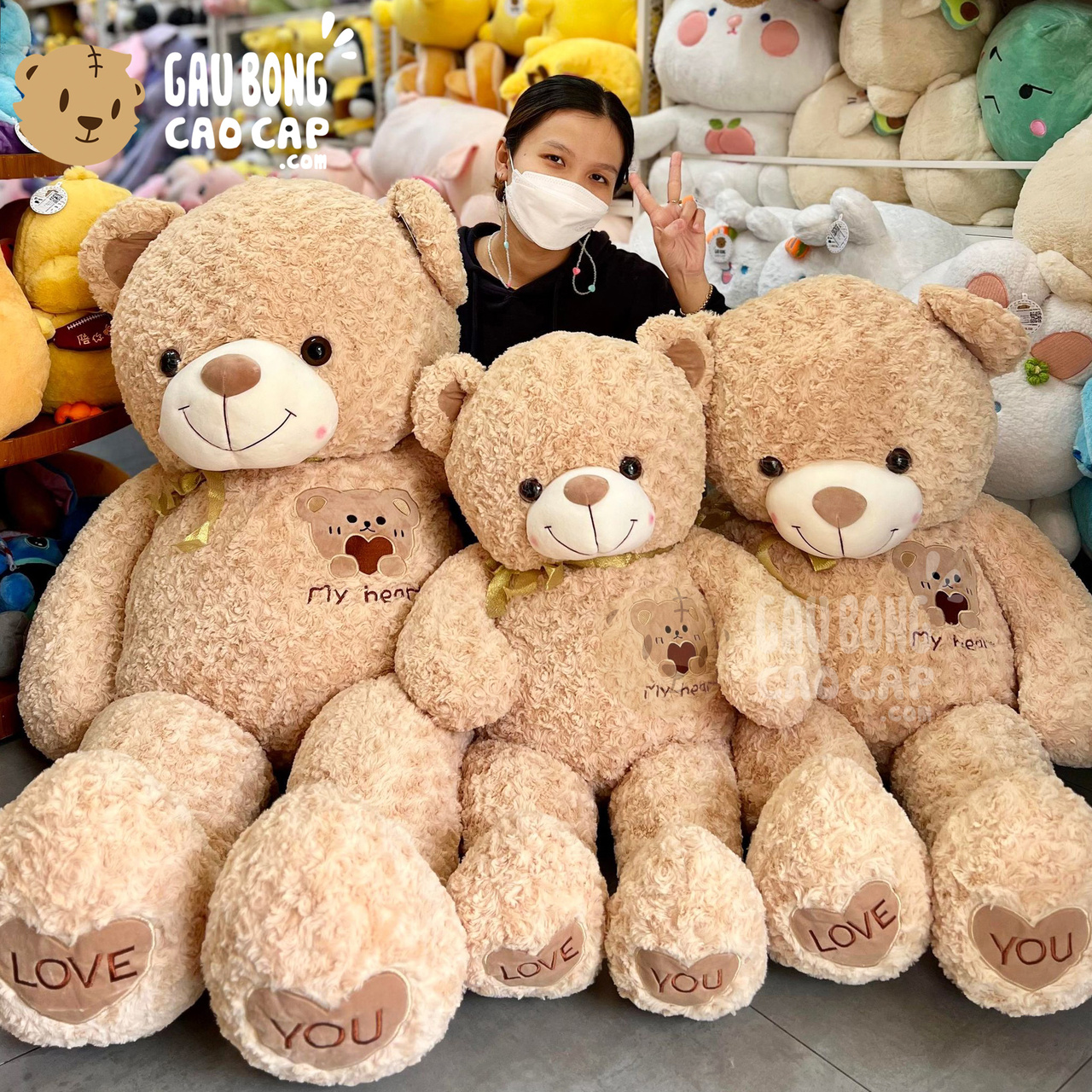 Gấu Teddy lông xoắn Ngực thêu Gấu My Heart được thiết kế với 3 kích thước Gấu Bông lớn nhỏ khác nhau: 1m5, 1m1, 1m35