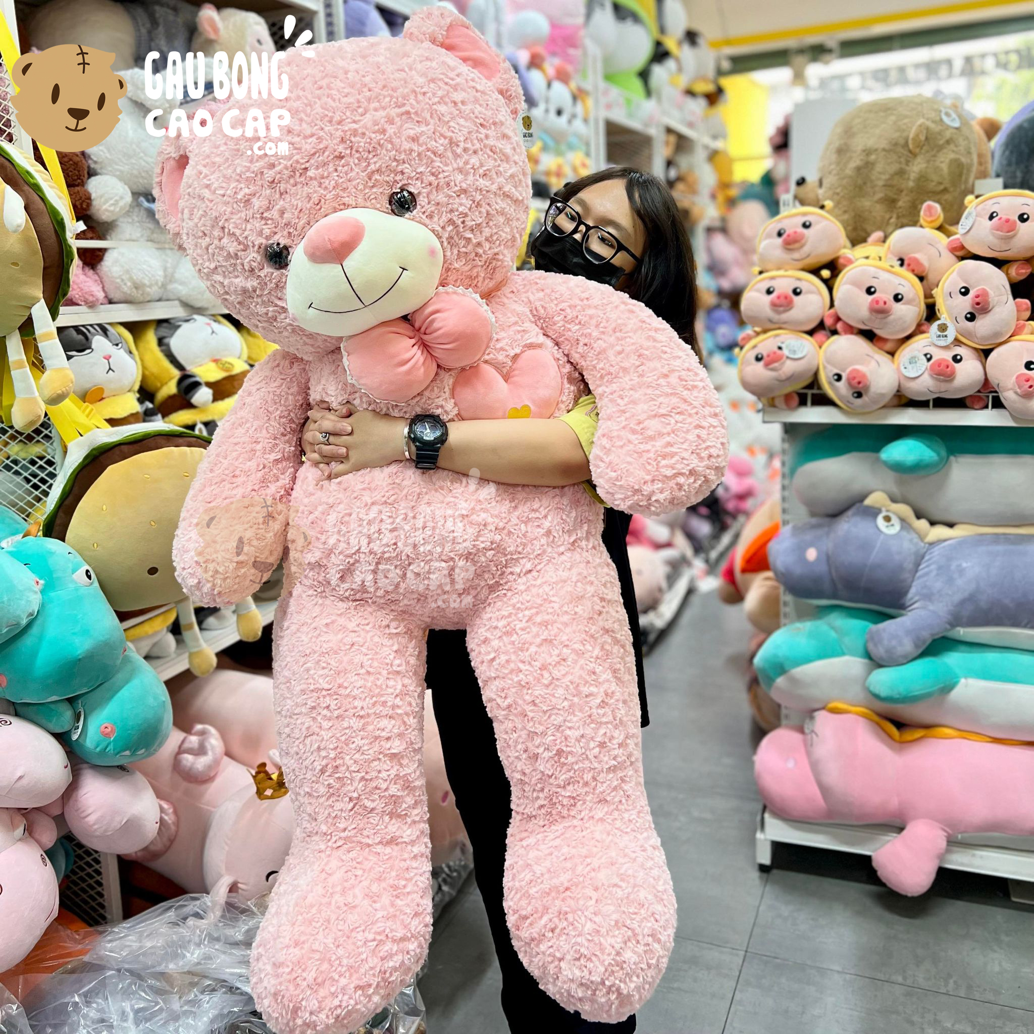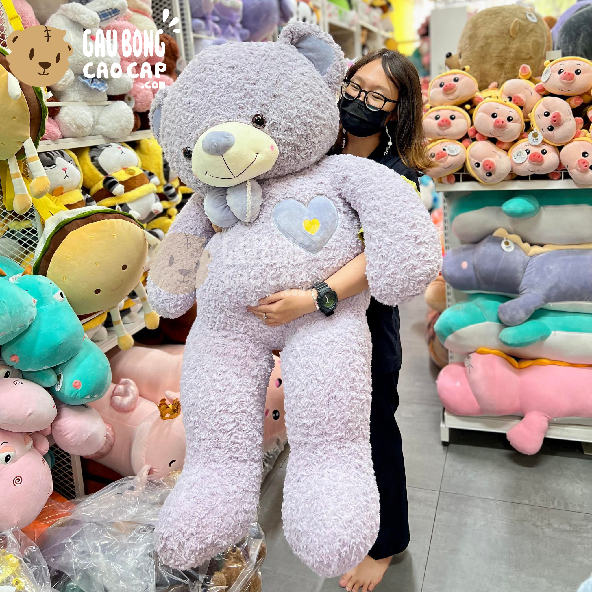 Gấu Teddy lông xoắn Ngực Tim đeo Nơ được thiết kế với 3 kích thước Gấu Bông lớn nhỏ khác nhau: 80cm, 95cm, 1m35