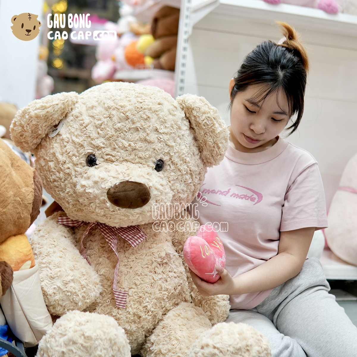 Gấu Teddy lông xoắn ngực Tim Rút - Màu Kem được thiết kế với 4 kích thước Gấu Bông lớn nhỏ khác nhau: 70cm, 1m, 1m2, 1m5