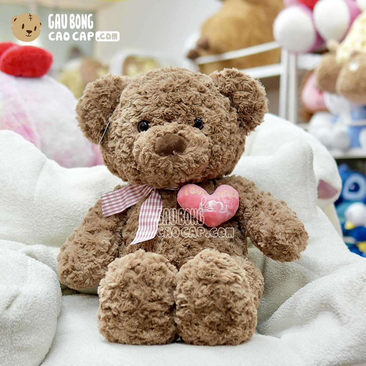 Gấu Teddy lông xoắn ngực Tim Rút - Màu Nâu - Gấu Bông Cao Cấp - gaubongcaocap.com