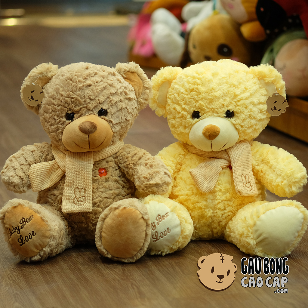 Gấu Teddy với bộ lông xù siêu chất, có 2 màu Nâu Cafe & vàng. Chú Gấu con vô cùng dễ thương hơn khi được thiết kế với chiếc khăn choàng rất dễ thương.