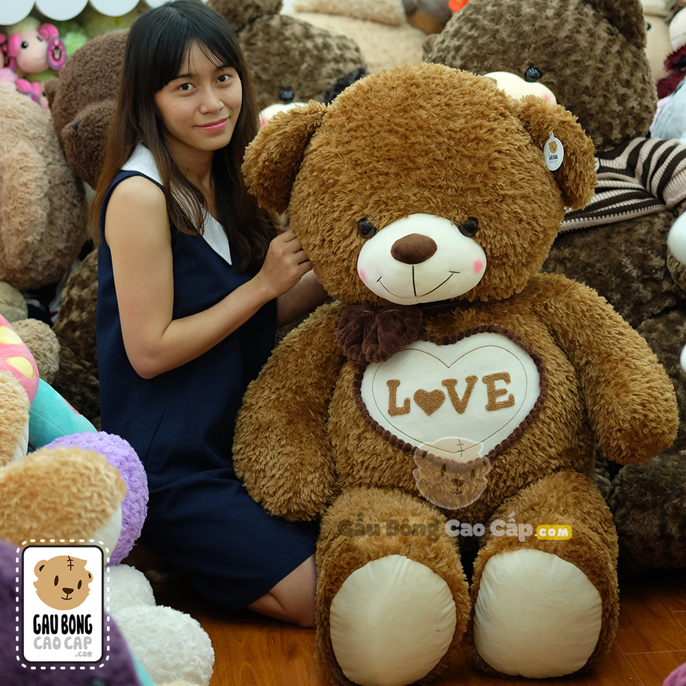 Gấu Teddy lông xù nơ tim LOVE được thiết kế với 1 kích thước Gấu Bông lớn nhỏ khác nhau: 1m3