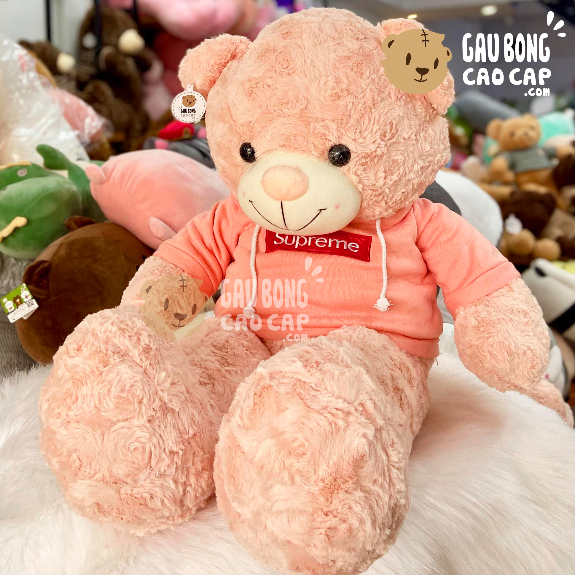 Gấu Teddy mặc áo Hoodie màu Hồng được thiết kế với 3 kích thước Gấu Bông lớn nhỏ khác nhau: 1m, 1m15, 1m3