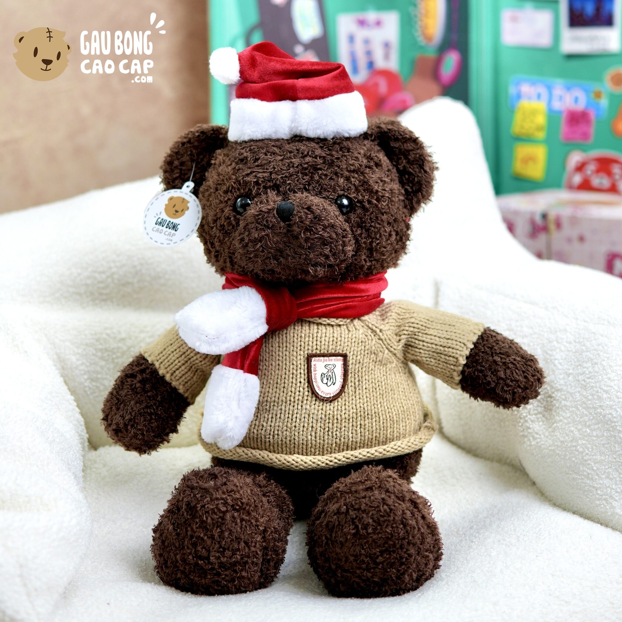 Gấu Teddy Noel choàng khăn lông xù Nâu Gấu Bông Noel