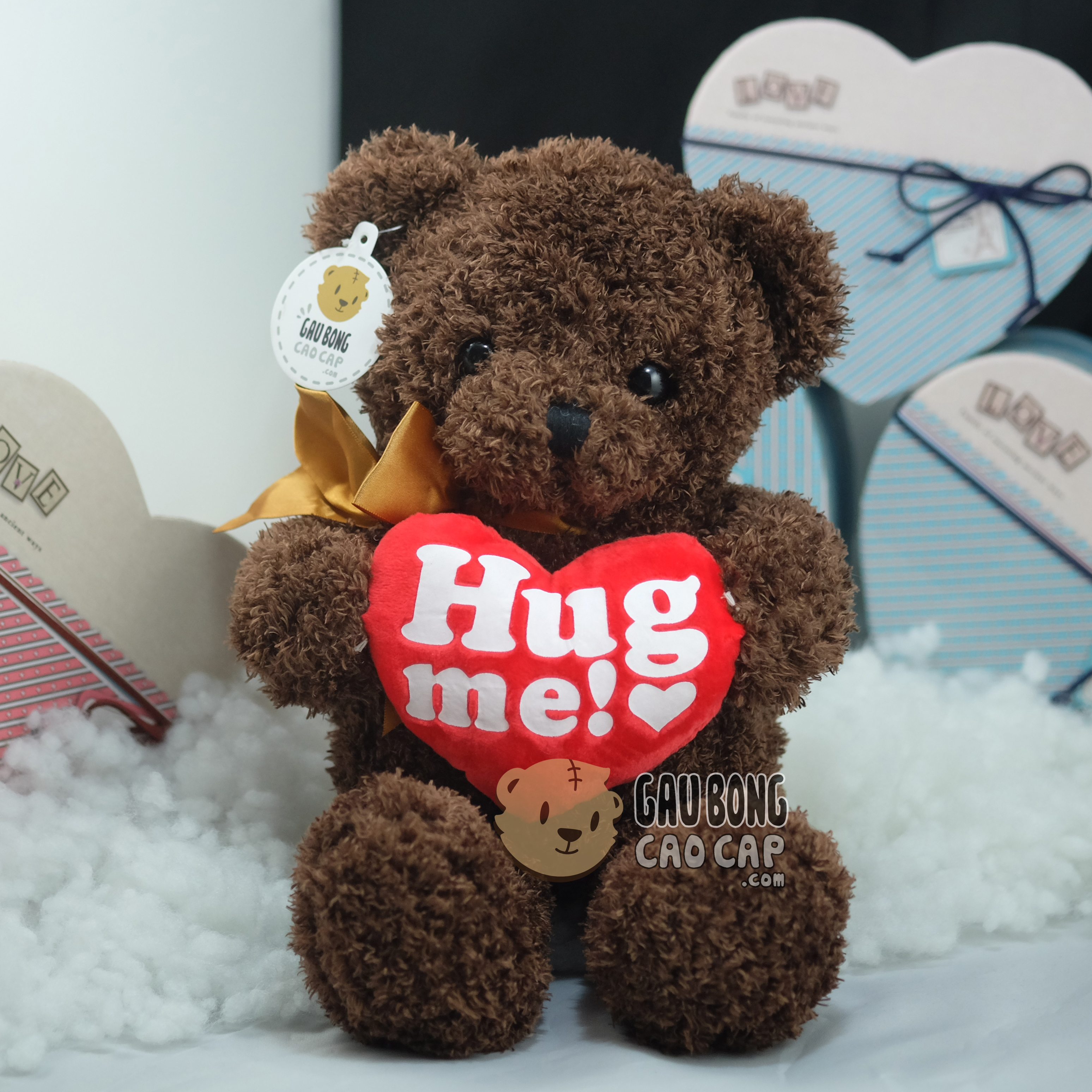 Gấu Teddy ôm tim HUGME lông xù màu Choco - gaubongcaocap.com